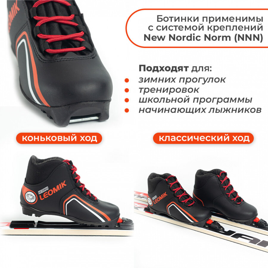 Ботинки лыжные Leomik Health (red) черные размер 37 для беговых прогулочных лыж крепление NNN