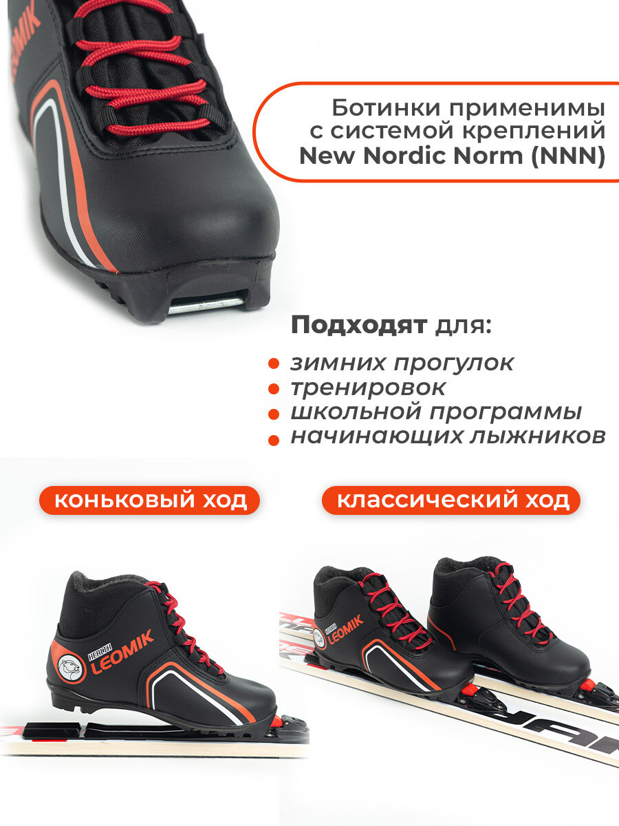 Купить Ботинки лыжные детские Leomik Health (red) черные размер 33 для беговых прогулочных лыж крепление NNN