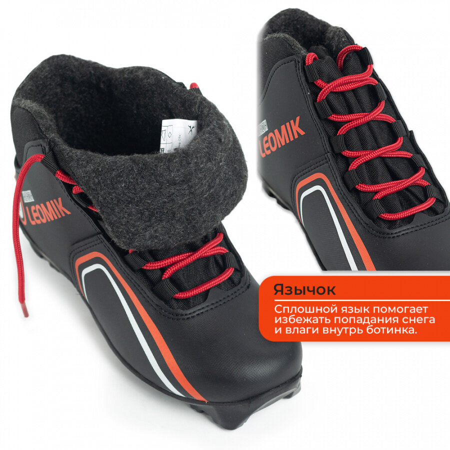 Ботинки лыжные детские Leomik Health (red) черные размер 36 для беговых прогулочных лыж крепление NNN