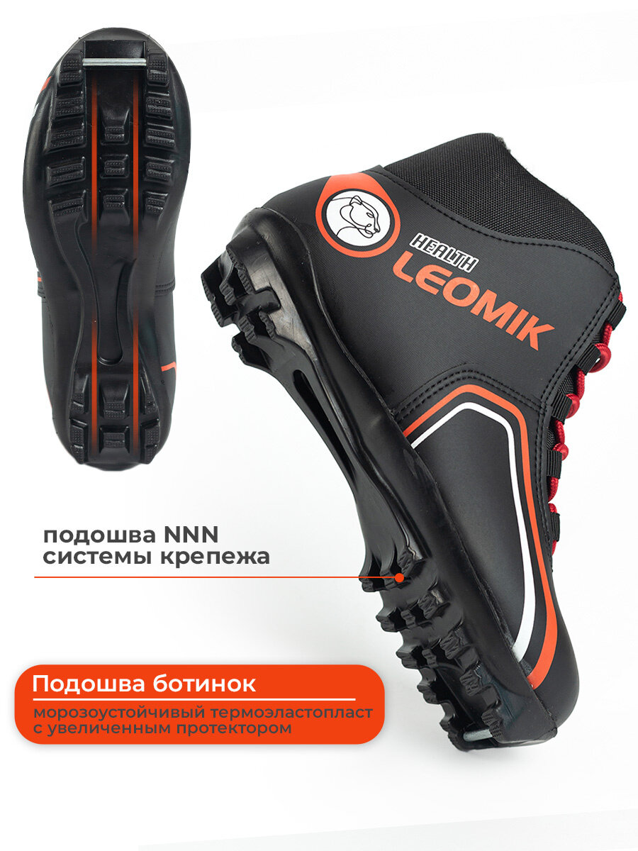 Ботинки лыжные Leomik Health (red) черные размер 37 для беговых прогулочных лыж крепление NNN