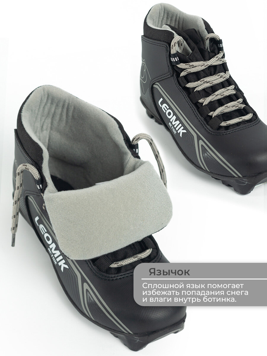 Ботинки лыжные Leomik Active (grey) NNN, размер 34, черно-серые
