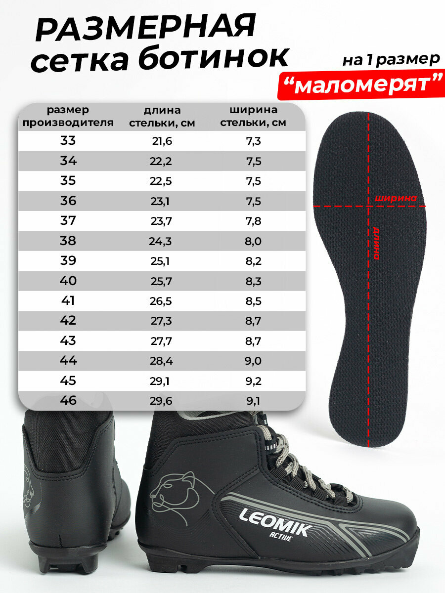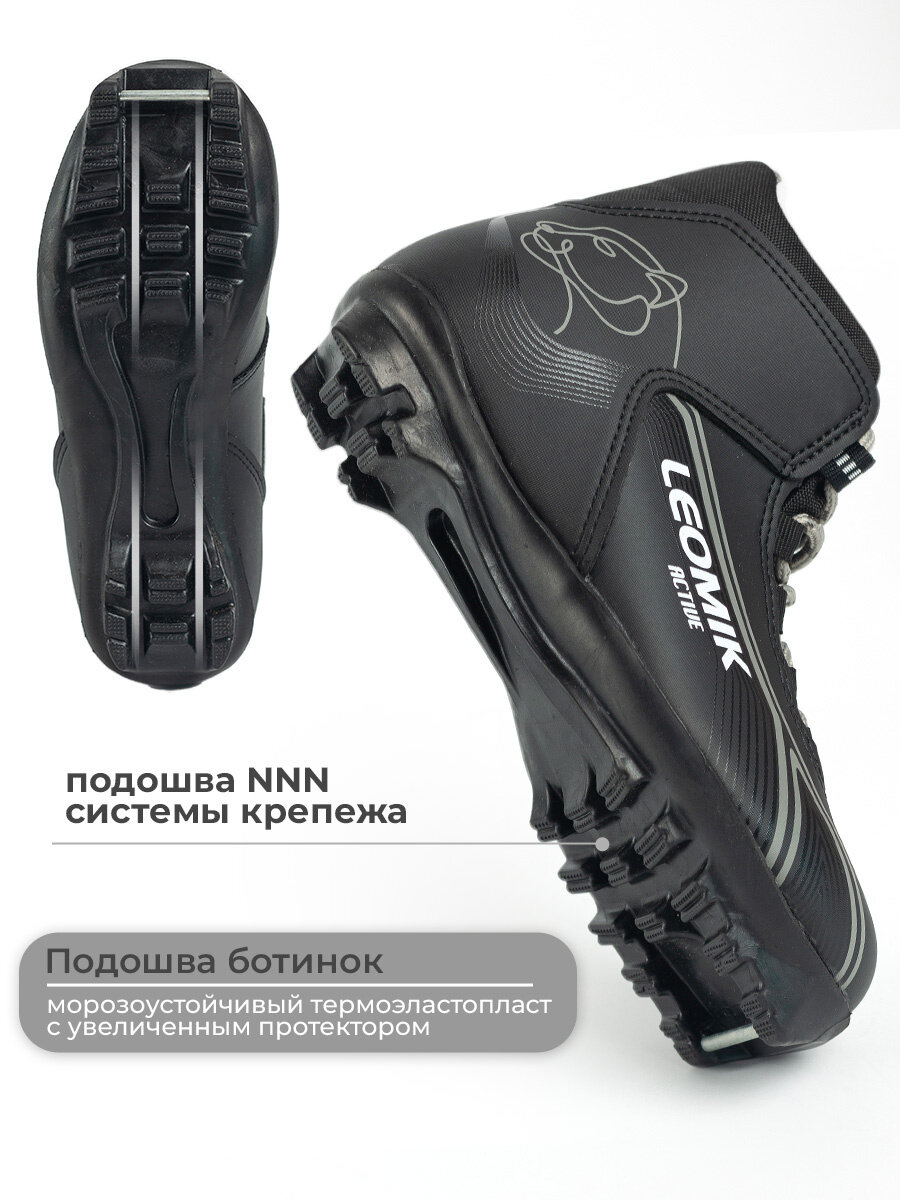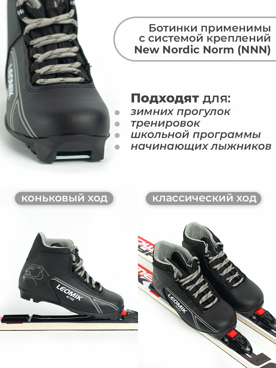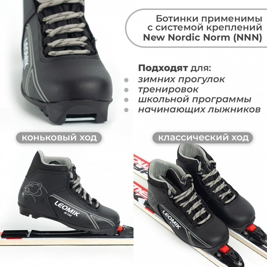Ботинки лыжные детские Leomik Active черные размер 35 для беговых прогулочных лыж крепление NNN мм интересное: