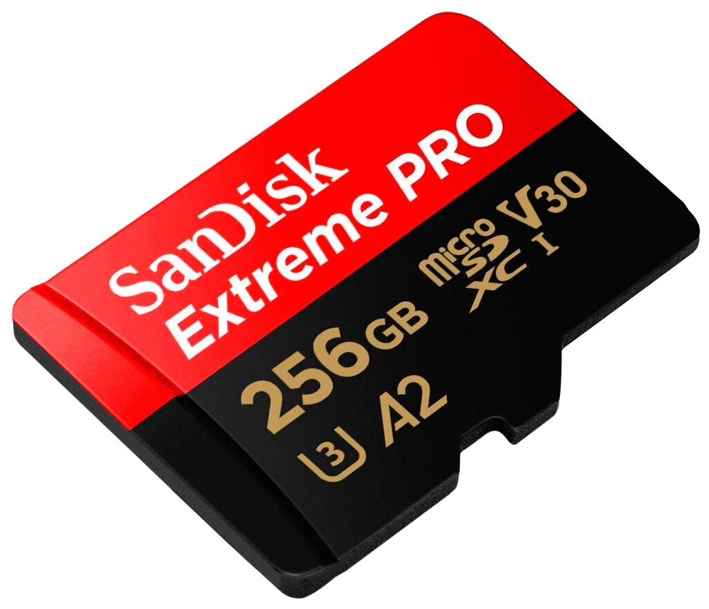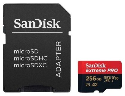 Карта памяти SanDisk Extreme Pro microSDXC 256 ГБ UHS-I, V30, A2, U3, R/W 170/90 МБ/с с адаптером
