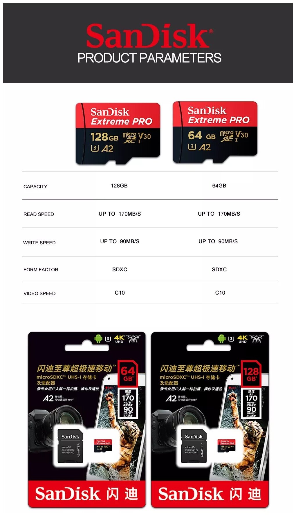 СохранитьКарта памяти Micro SD 64 Gb Sandisk Extreme Pro, 170Mb/s UHS-I A2 C10 V30 U3 (SDSQXCY-064G-GN6MA) интересное: