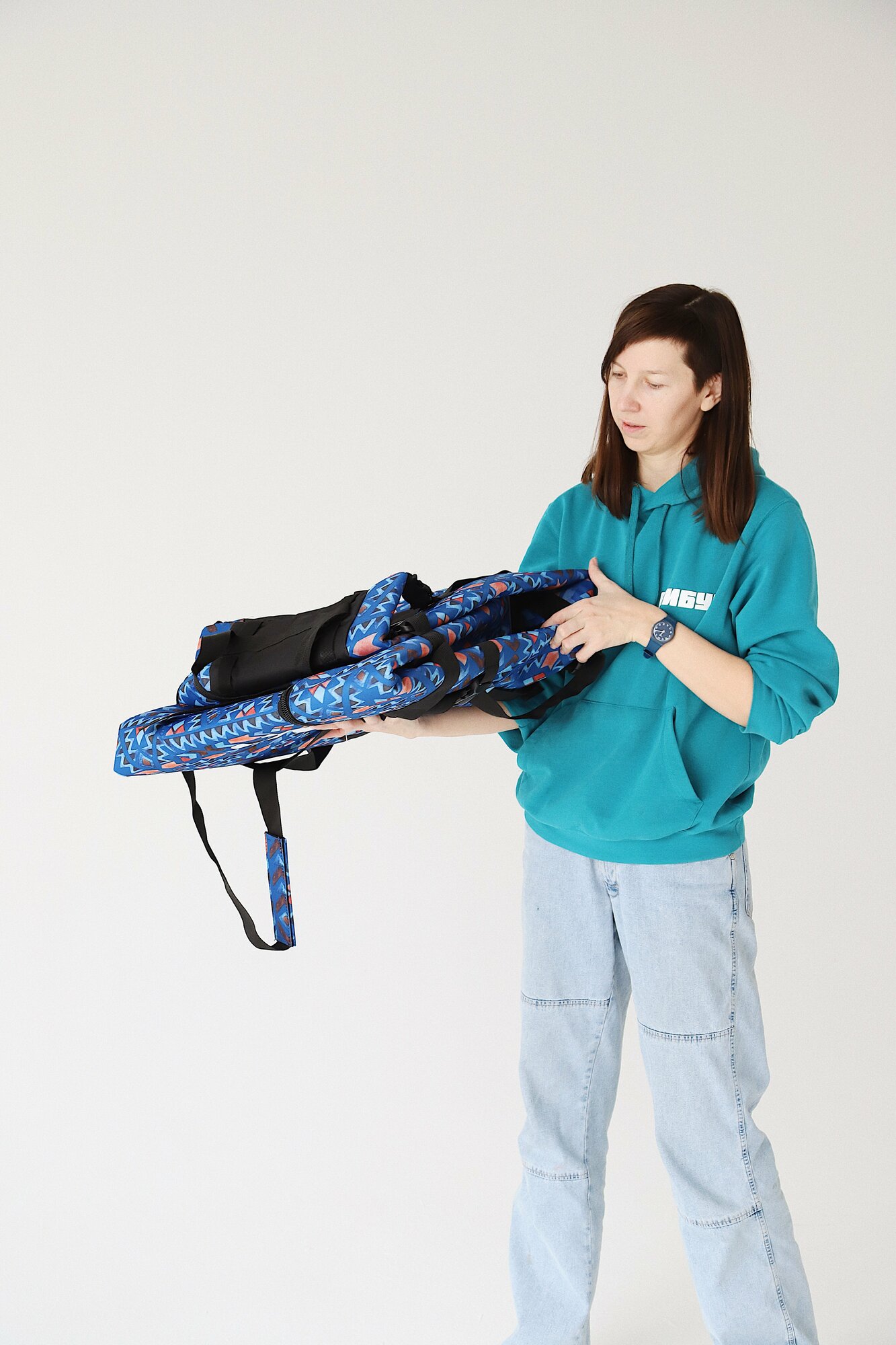 Чехол для сноуборда и горных лыж четырёхслойный с колесами 180-210 см (синий этнический принт)