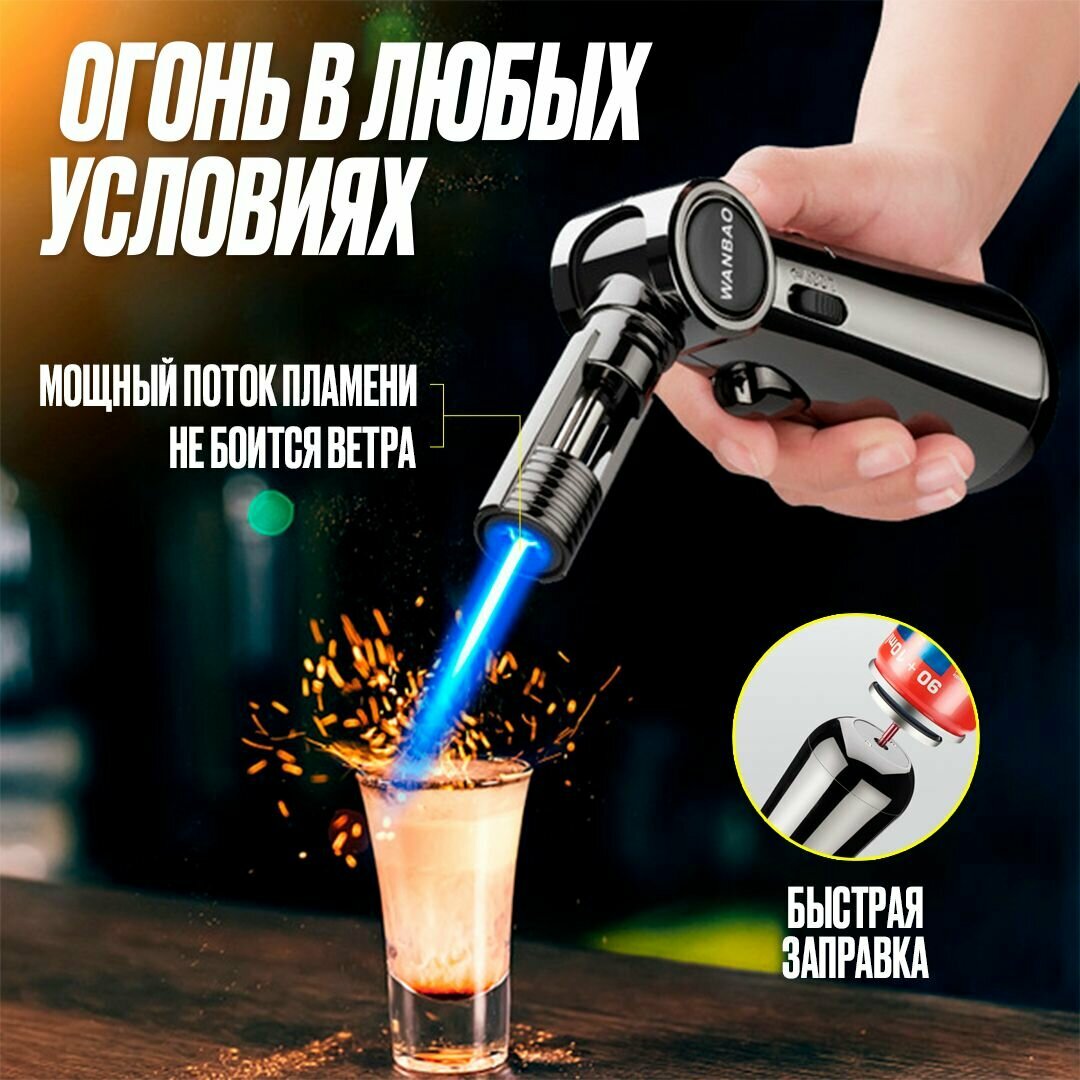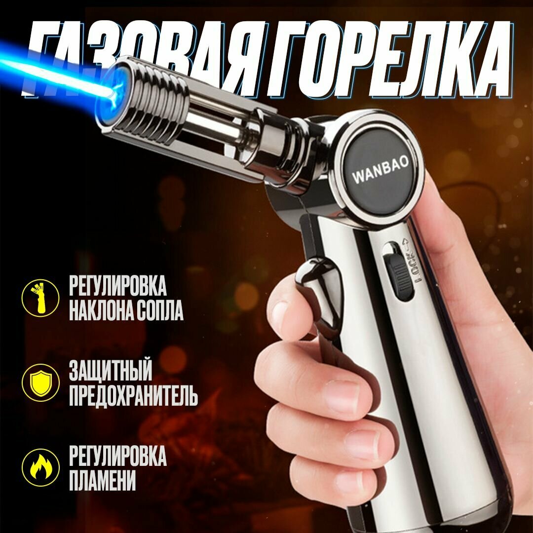 Портативная газовая зажигалка / Мощная многофункциональная турбо горелка с регулируемым пламенем / Ветрозащитная интересное: