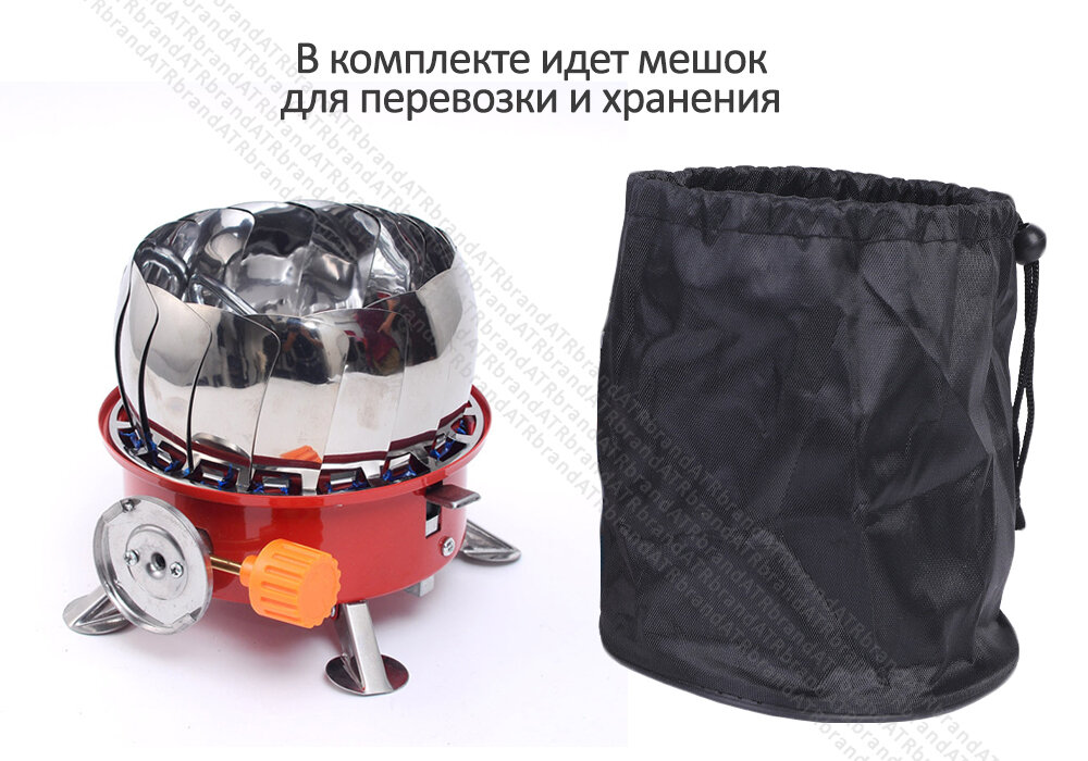 Туристическая газовая / походная плитка круглая, пьезоподжиг, чехол интересное: