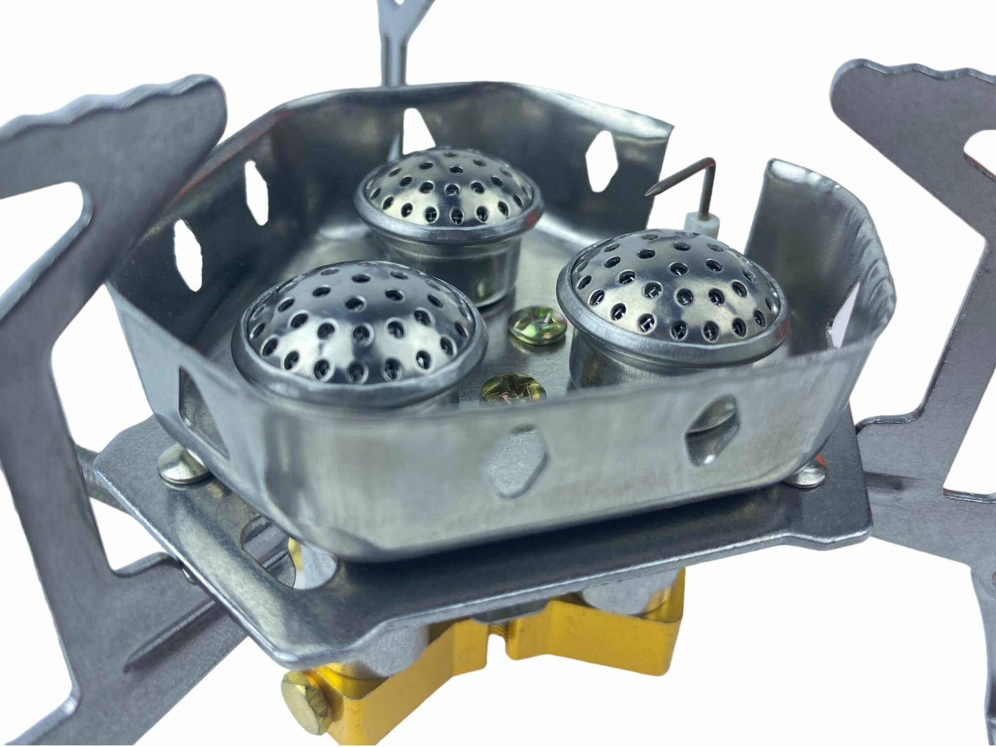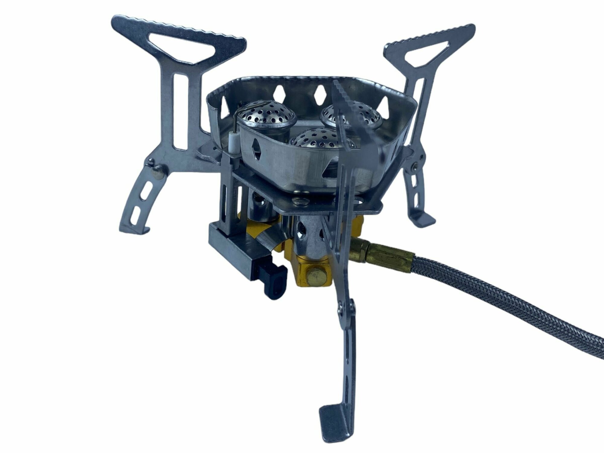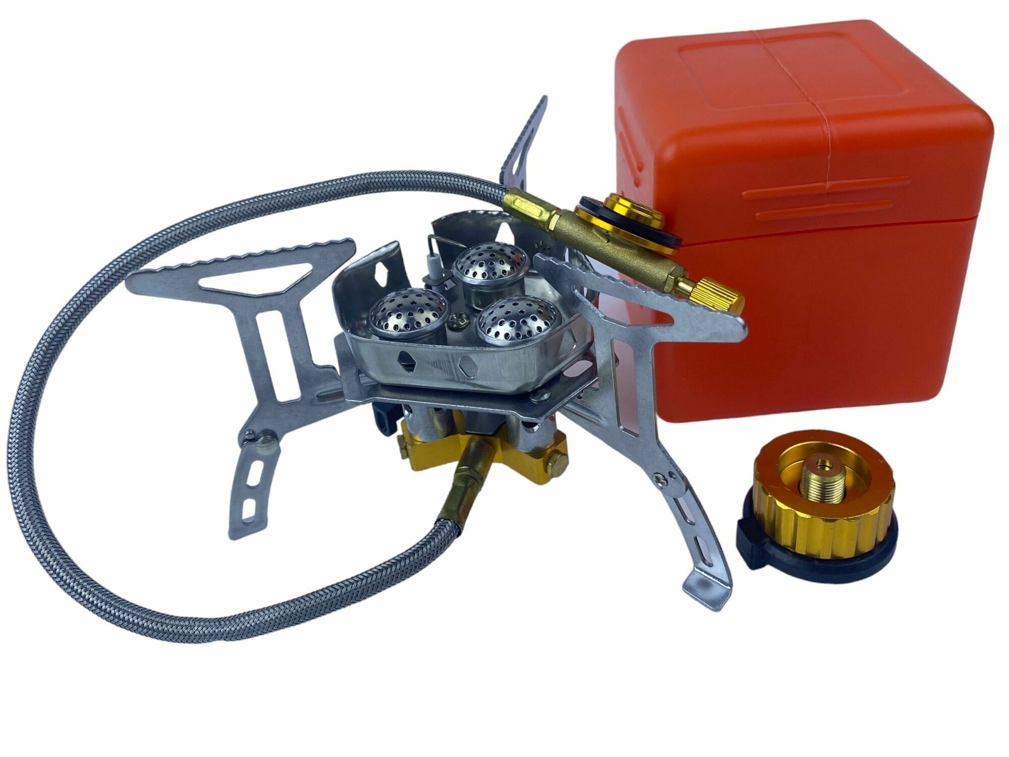 | Особенности конструкции | 3 конфорки, пьезоподжиг, цанговое подключение баллона |