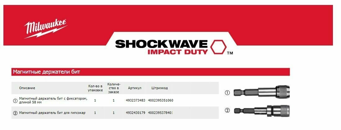 Магнитный держатель для бит Milwaukee, с фиксатором, 58 мм, 4932373483 интересное: