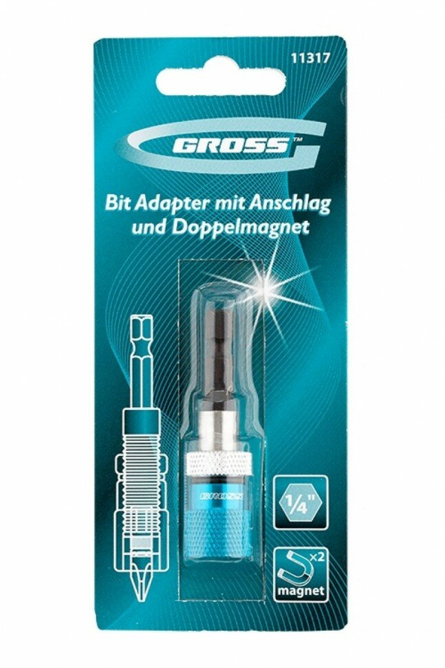 Адаптер для бит с ограничителем и двойным магнитом, 1/4"// Gross