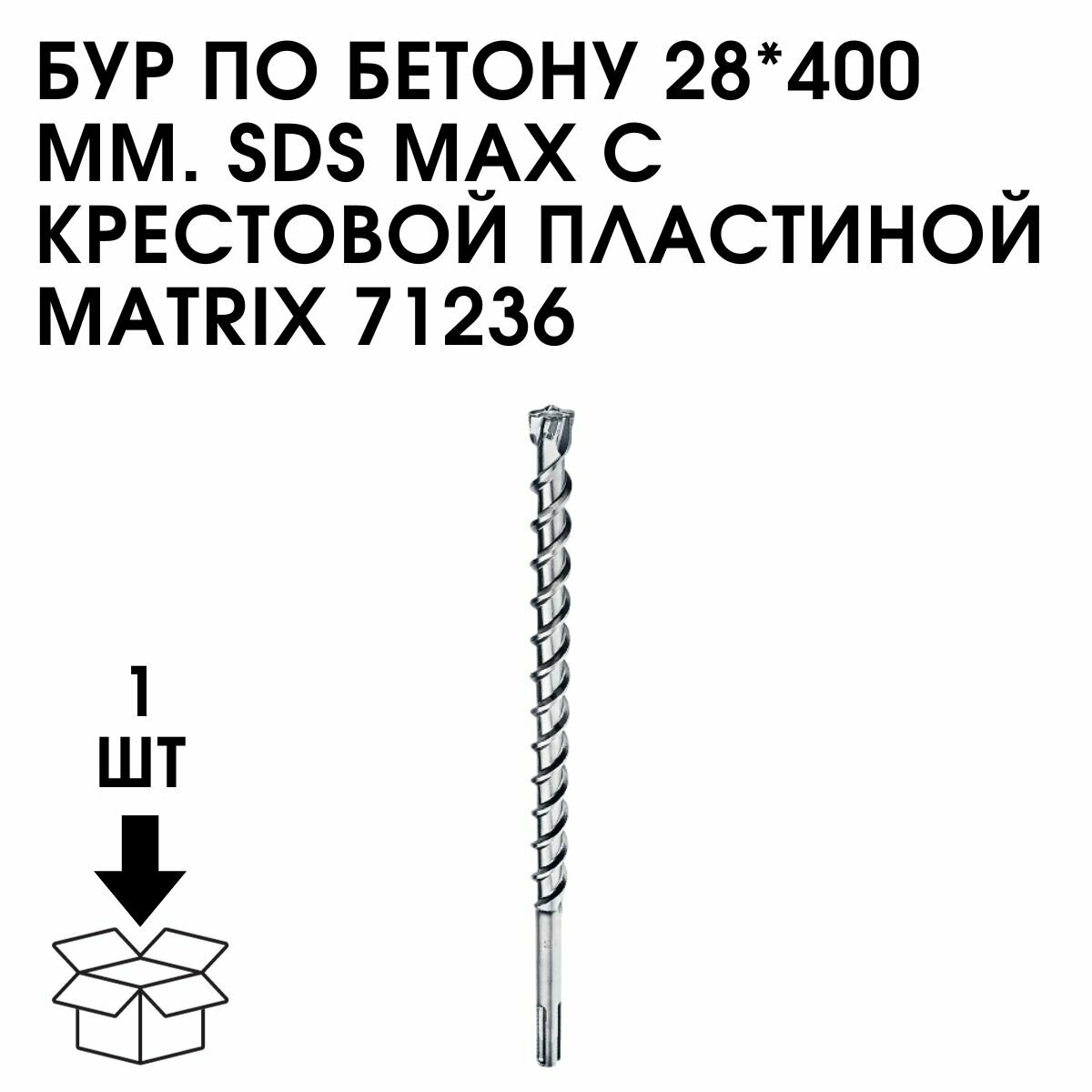 Купить Бур по бетону Matrix 28 х 400 мм, SDS MAX c крестовой пластиной 71236