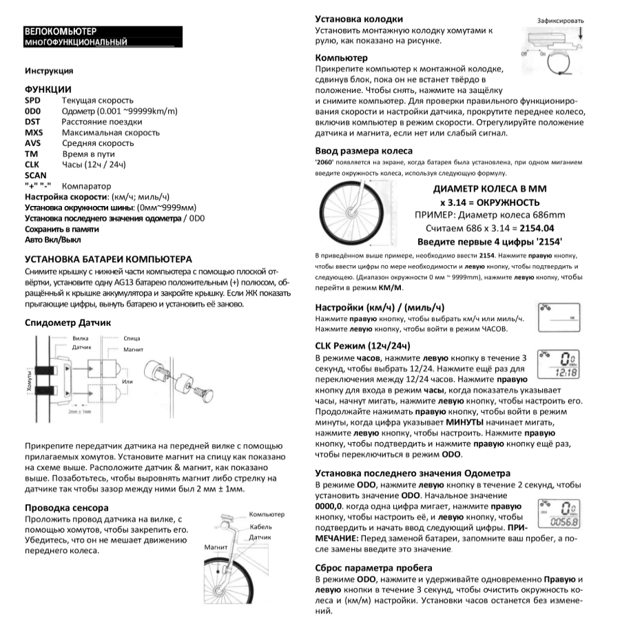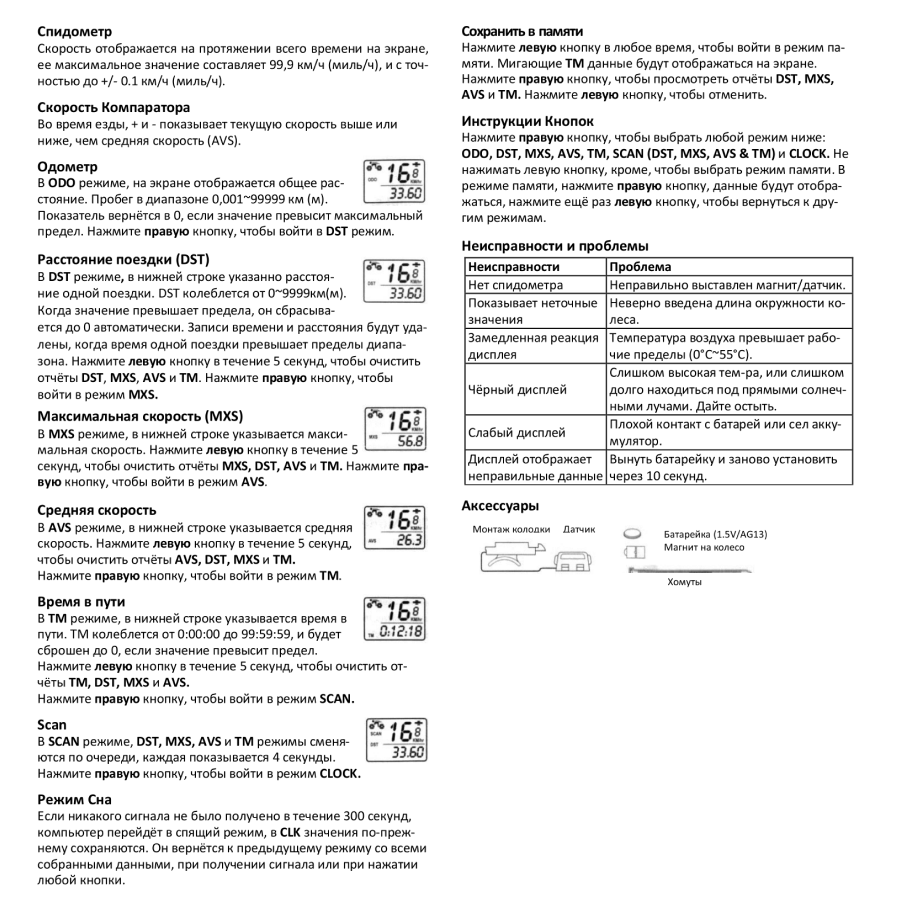 | Функции | максимальная скорость / общее время движения / одометр / расстояние одной поездки / средняя скорость / текущая скорость |
