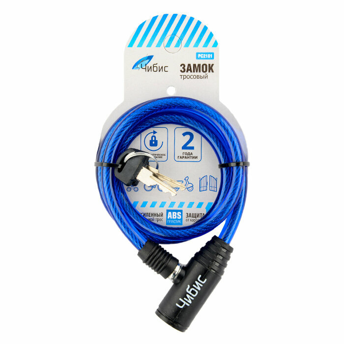 Замок навесной для велосипеда тросовый "Чибис" (8*800мм) синий, с ключом интересное:
