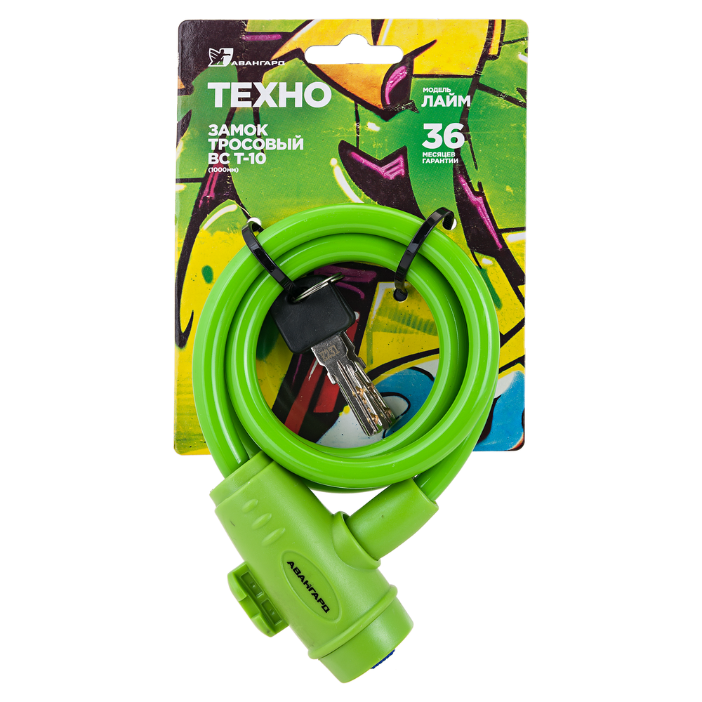 Авангард ВС-Т10 (1000 мм) техно лайм замок навесной с тросом (d=10мм) длина 1м (велосипедный) (арт. 508061)