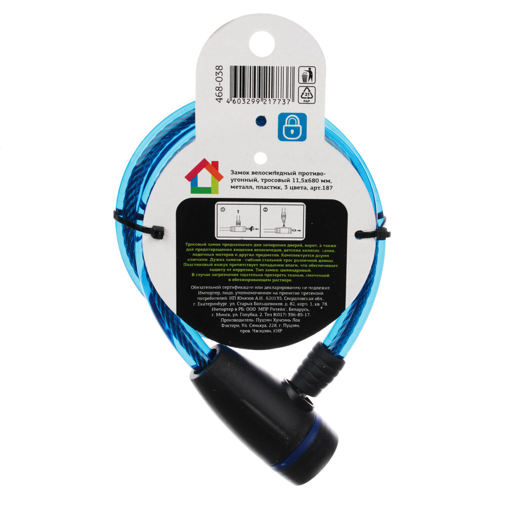 Замок велосипедный "ермак" тросовый противоугонный 11,5*680мм (468-038) интересное: