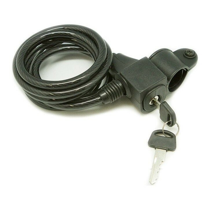 Замок TY-509 спиральный 8х1500мм с ключом и держателем, чёрный, в торг.уп. интересное: