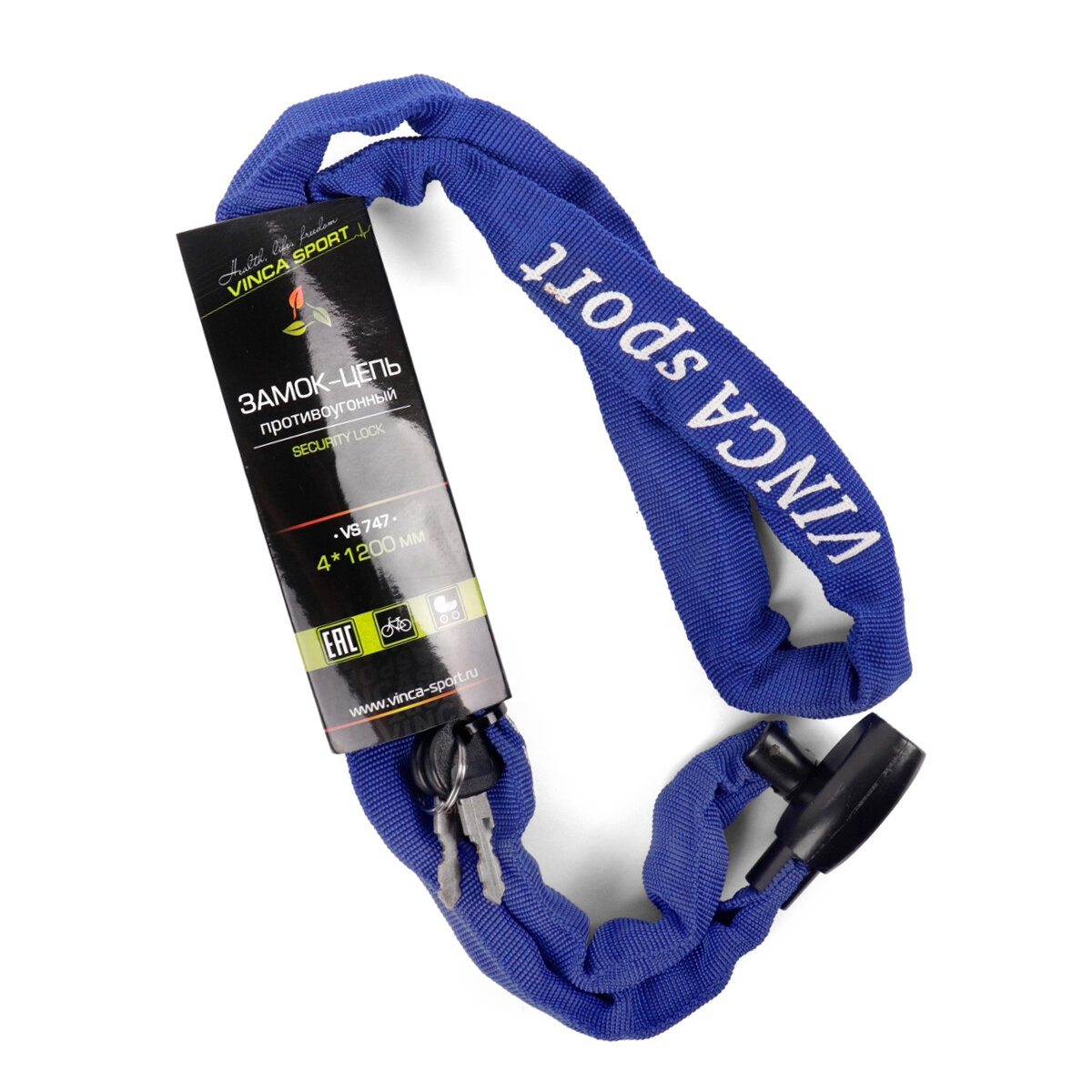 VS 747 blue. Замок велосипедный - цепь 4*1200мм, черная оплетка. инд.уп. Vinca Sport