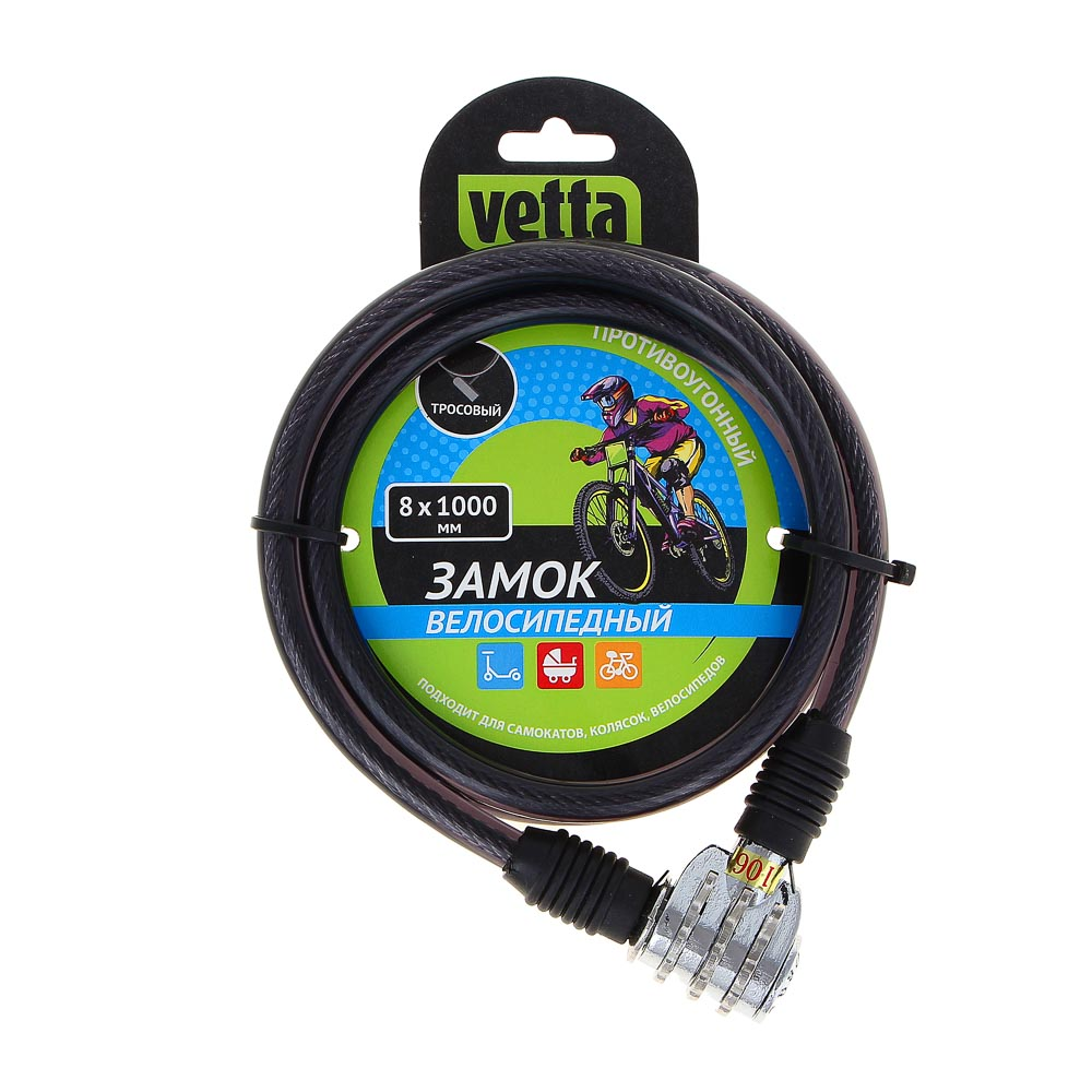 Купить VETTA Замок велосипедный противоугонный тросовый, 8х1000мм, металл