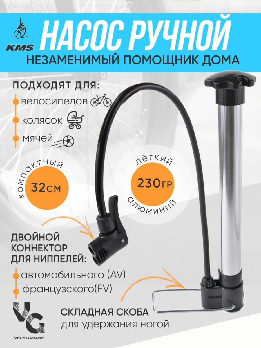 Насос велосипедный "KMS", A/V+Presta ручной алюминиевый с обратным толстым штоком (для велосипеда и детской коляски) интересное: