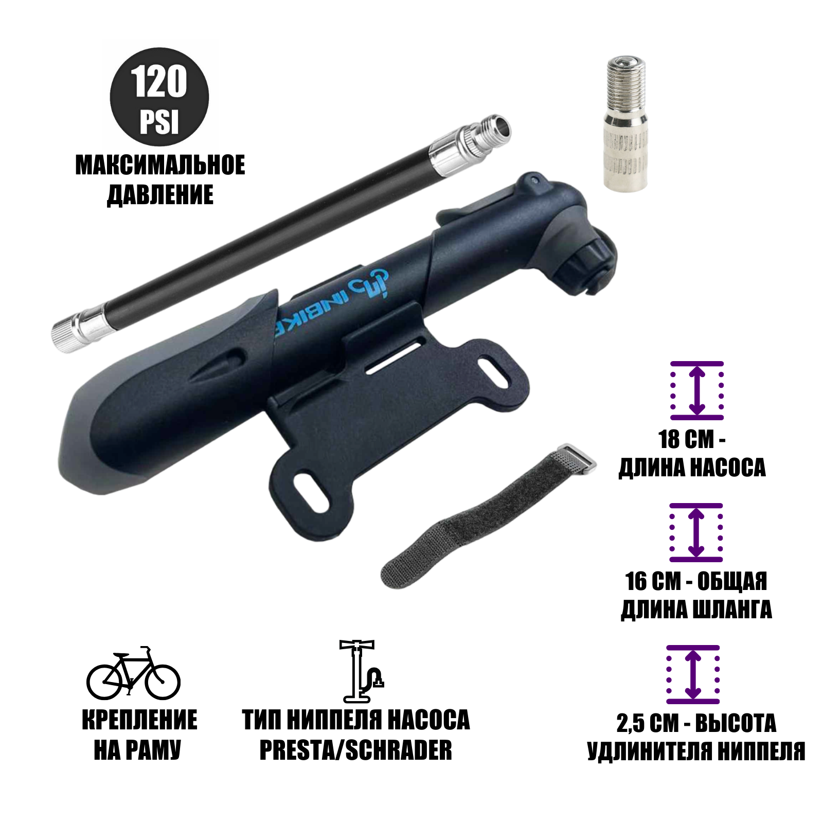 Комплект для велосипеда VS-VNUN-02: велонасос, шланг черный с удлинителем ниппеля для велосипеда или самоката интересное: