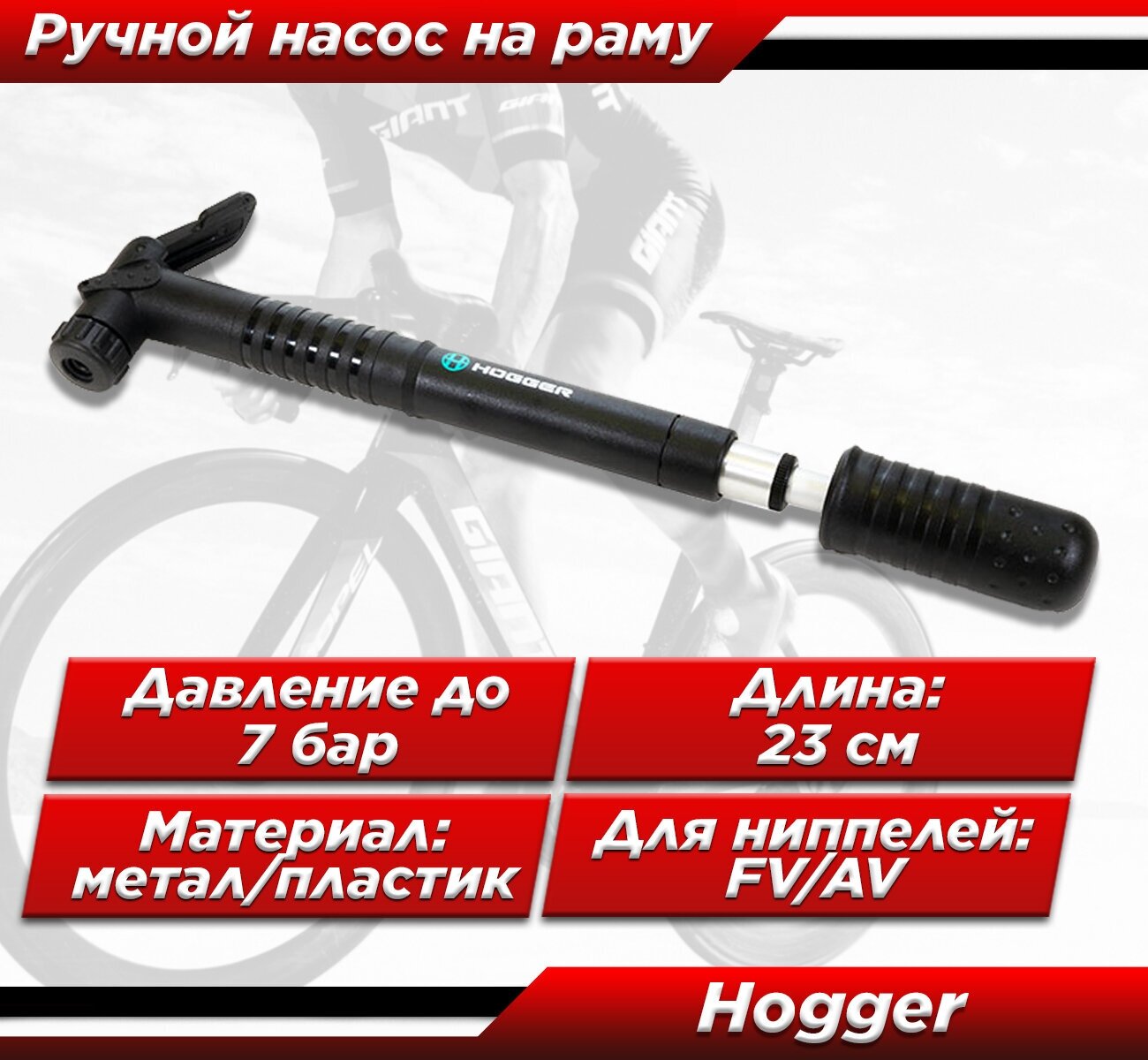 Купить Насос HOGGER ручной, под ниппель AV/FV, телескопический, max 100 psi/7 bar, 23см, пластик, черный