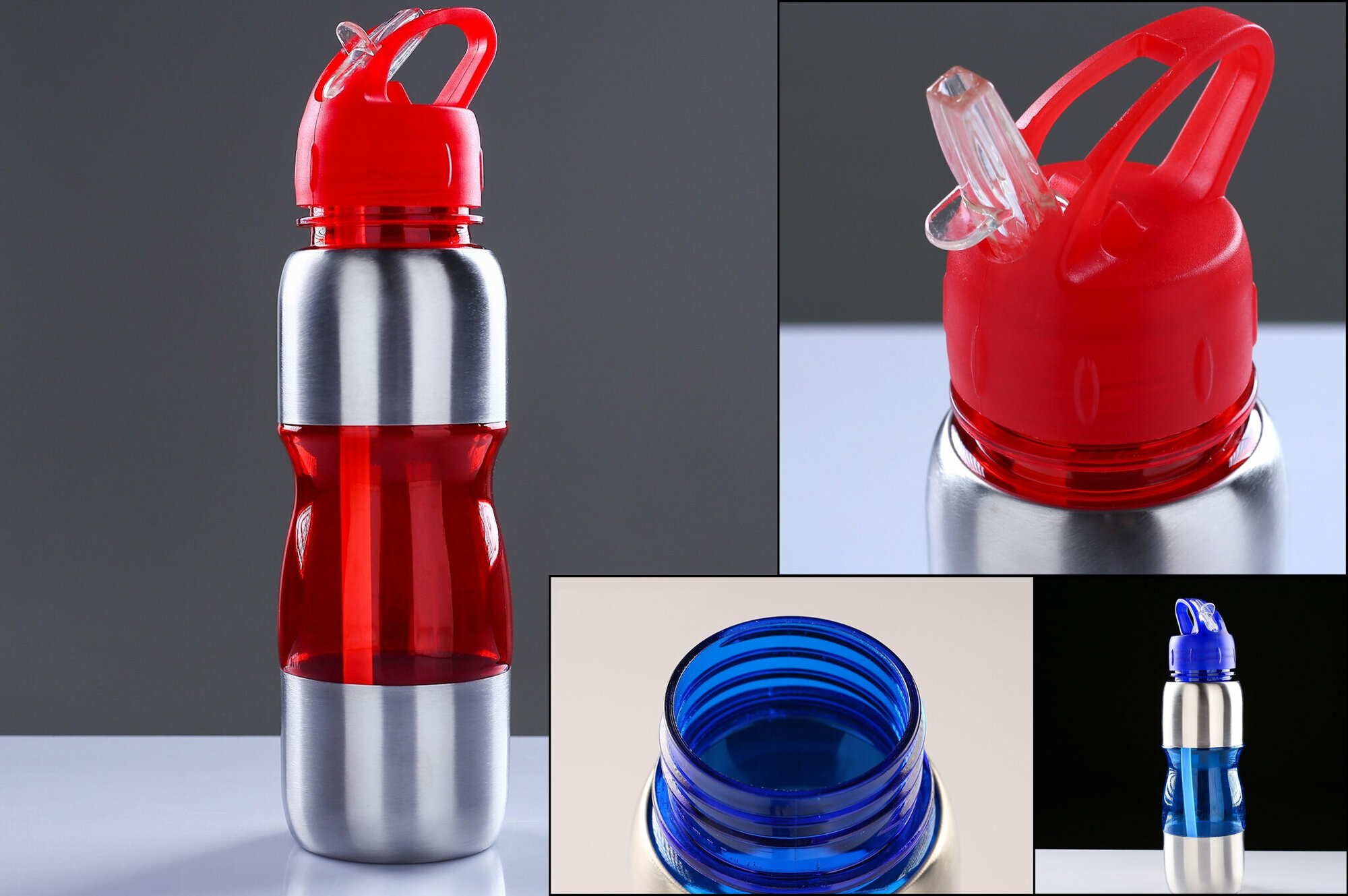 Купить Велосипедная фляга (650ml) (пластик, металл, цвет микс, 7х26 см) "Альби"