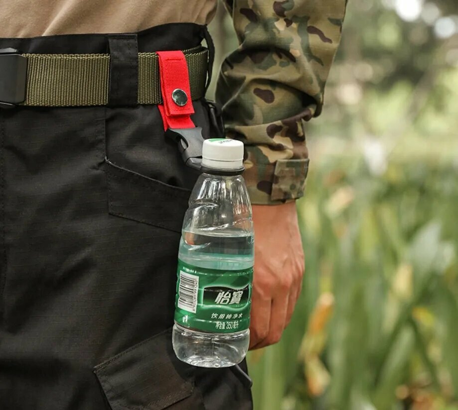 Держатель тактический для бутылки / Крючок карабин для бутылки воды на рюкзак / красный