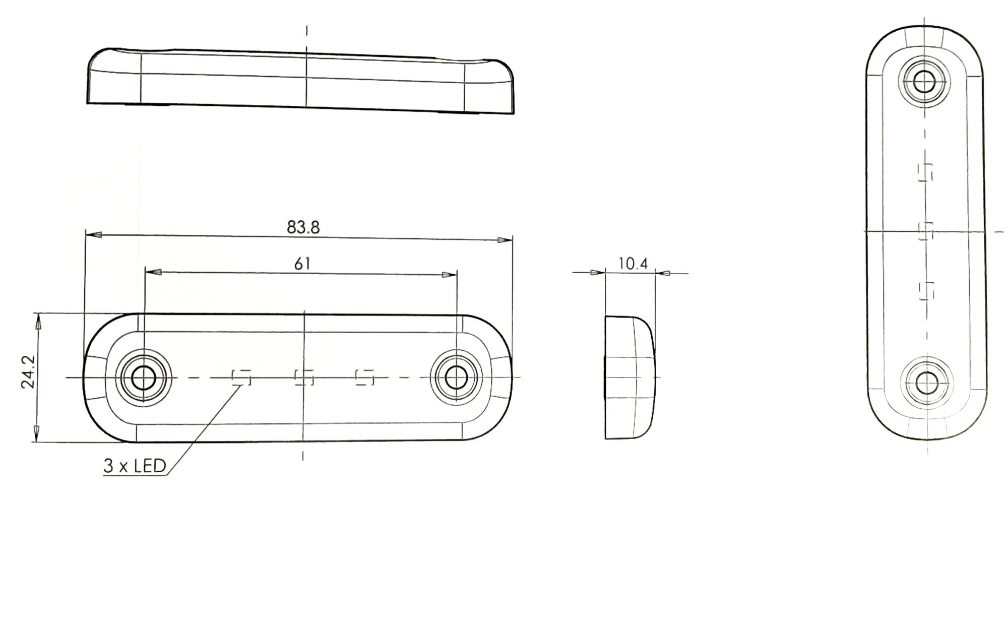 Фонарь габаритный белый LED 12/24 V 3 диода интересное: