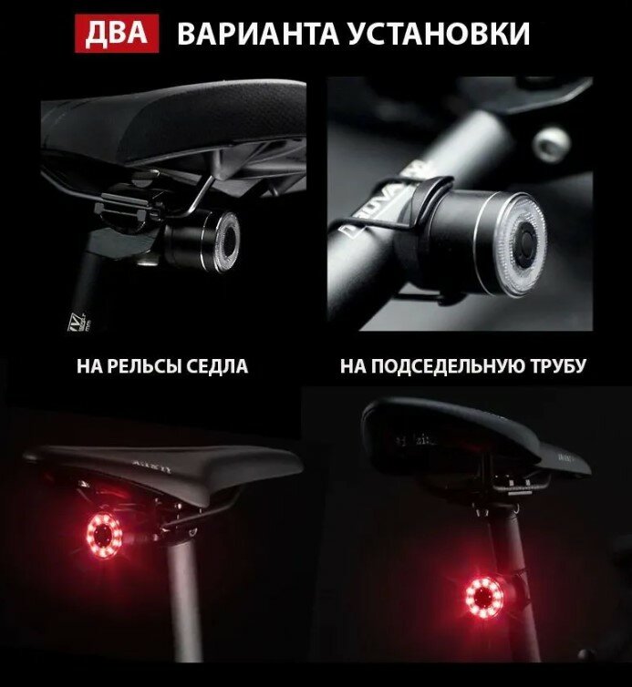 Стоп-сигнал (в сборе) велосипедный (универсальный) (2 RED LED, solar energy, черный) "GJCT"