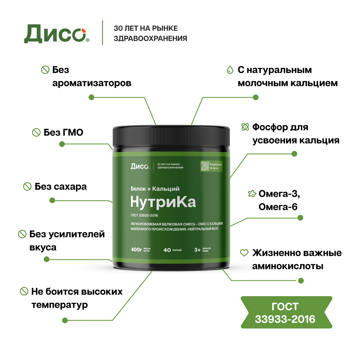 Дисо НутриКа белковая смесь с молочным кальцием для детей с 3 лет и взрослых 400г 40 порций интересное: