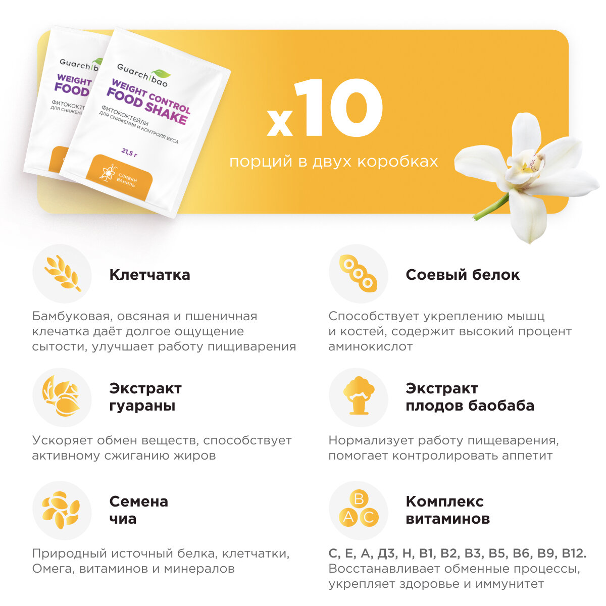 Фитококтейль для похудения с клетчаткой, для снижения и контроля веса Guarchibao Weight Control со вкусом Сливки-Ваниль