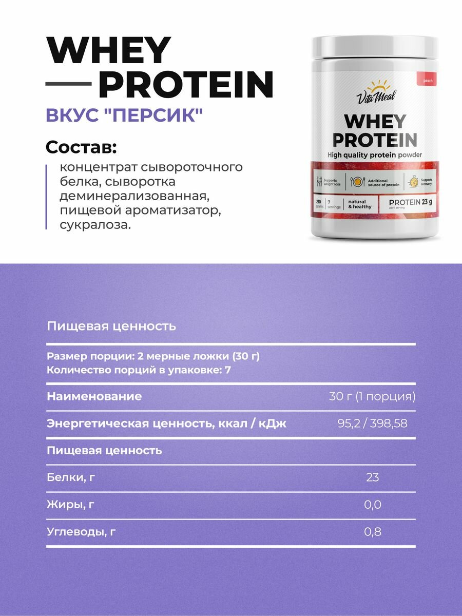 Купить Протеин VitaMeal Whey Protein, 210 грамм, Персик