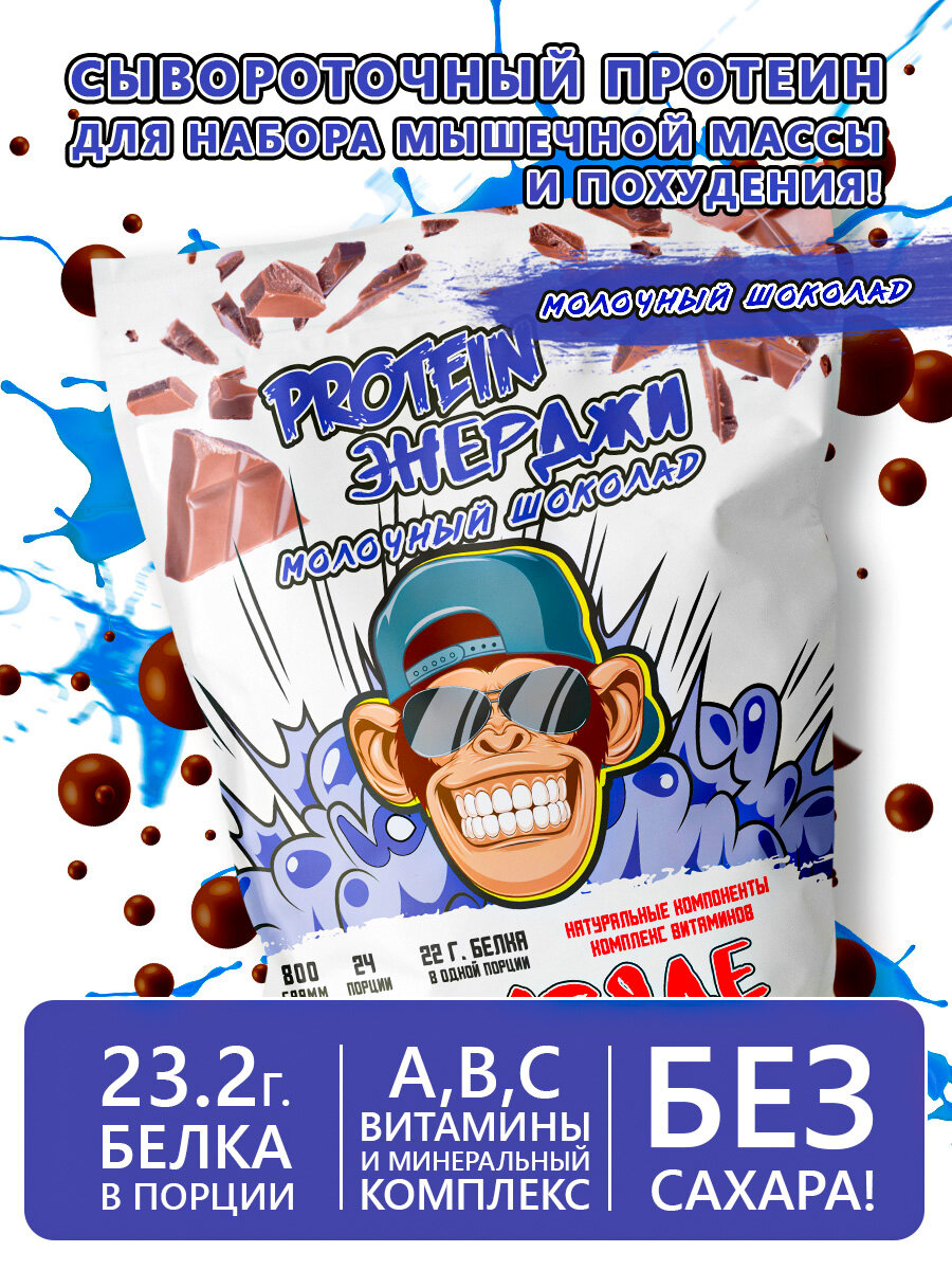 Сывороточный протеин PROTEIN энерджи Молочный Шоколад 800г 24 порции интересное: