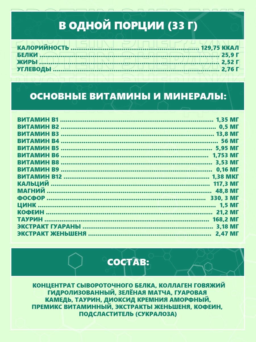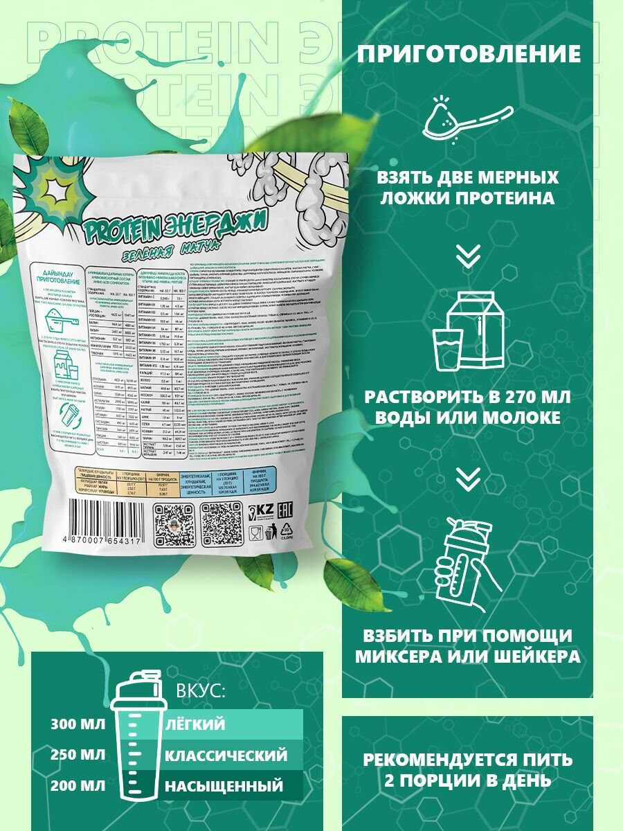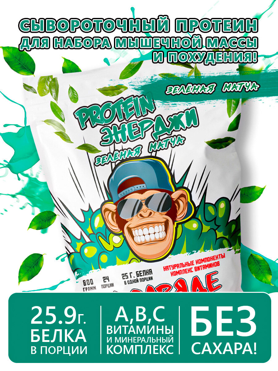 Сывороточный протеин PROTEIN энерджи Зеленая Матча 800г 24 порции интересное: