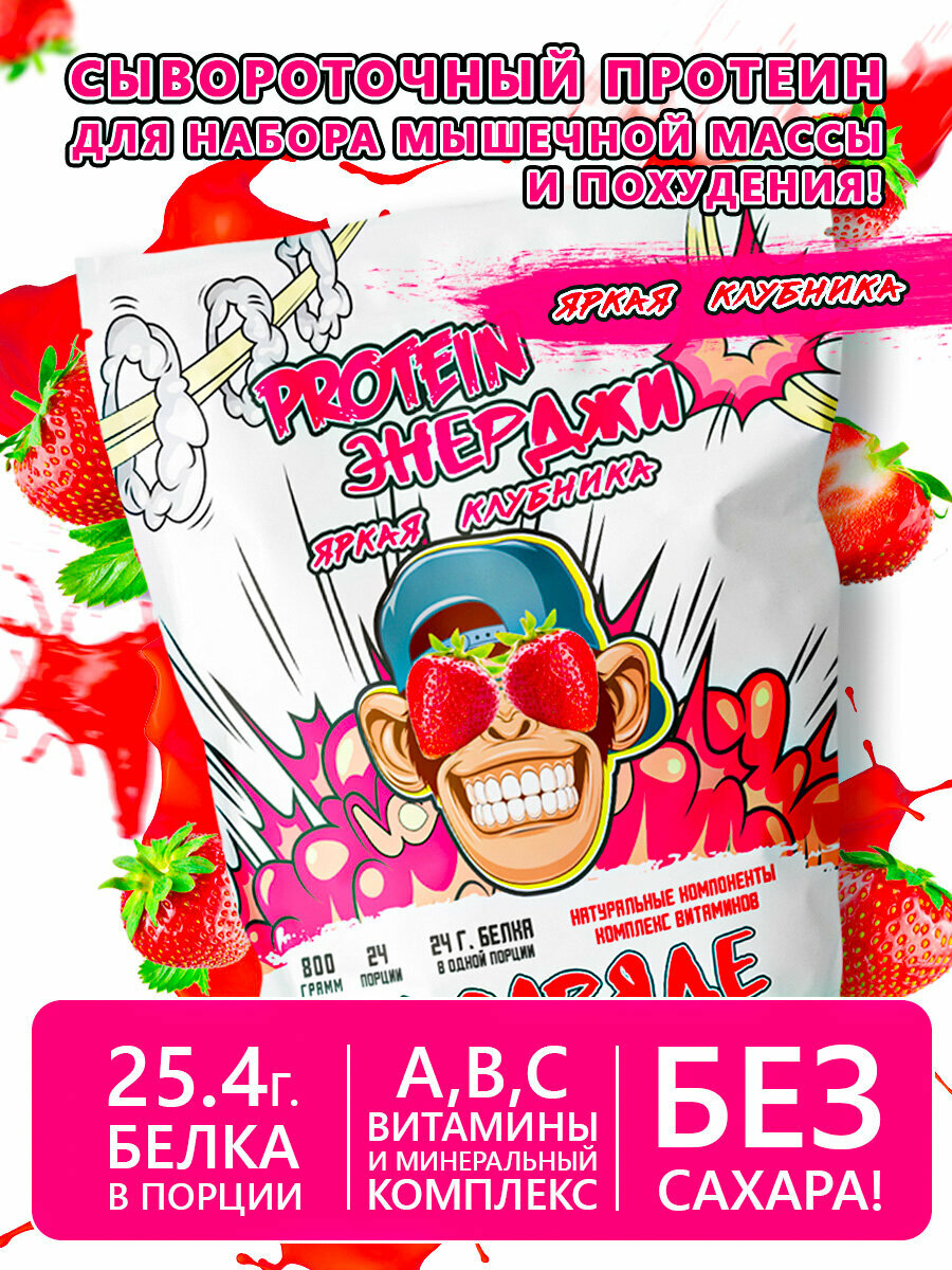 Сывороточный протеин PROTEIN энерджи Яркая Клубника 800г 24 порции интересное: