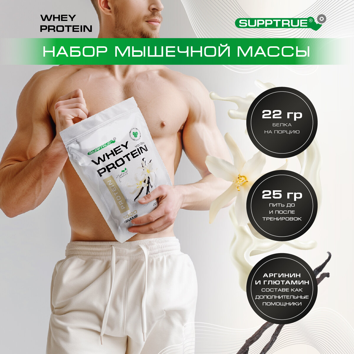 СохранитьSupptrue Протеин Изолят сывороточного белка 1000г со вкусом ваниль интересное: