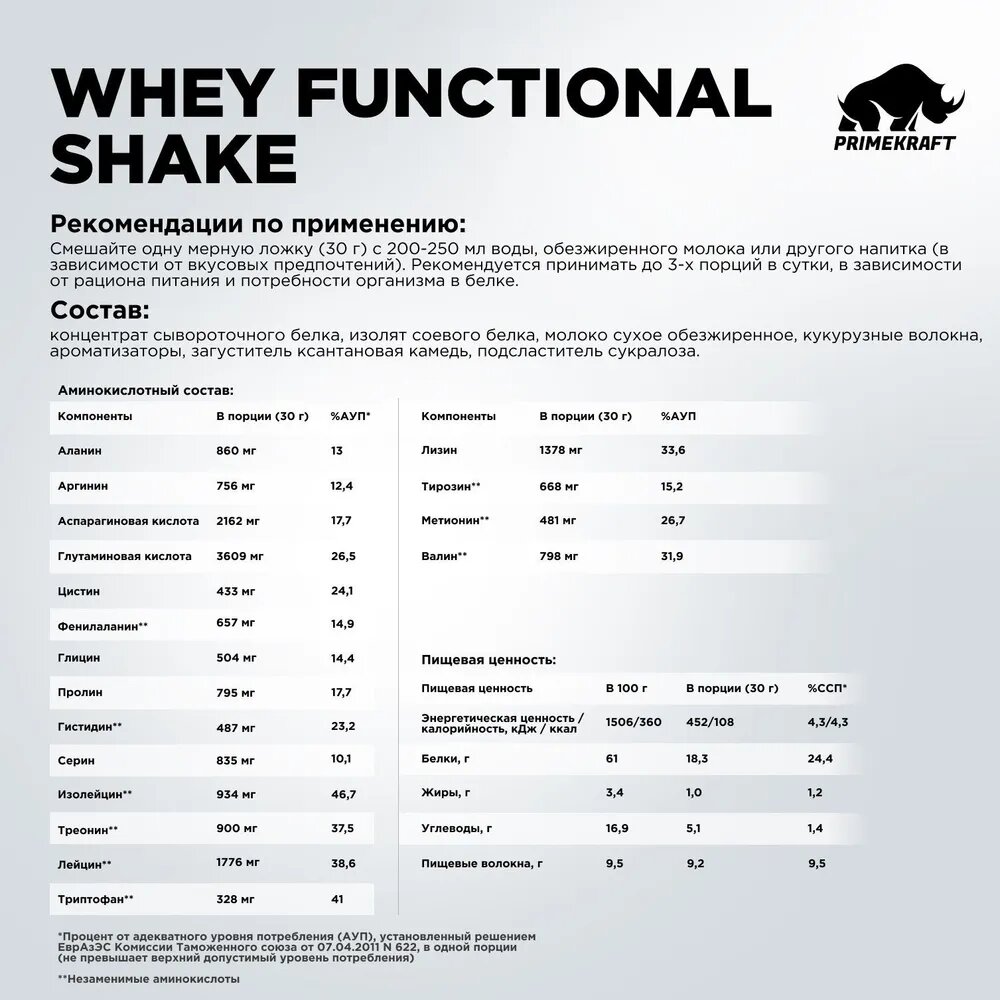 Протеин сывороточный PRIMEKRAFT Whey Functional Shake, Шоколад, 500 гр, дой пак интересное: