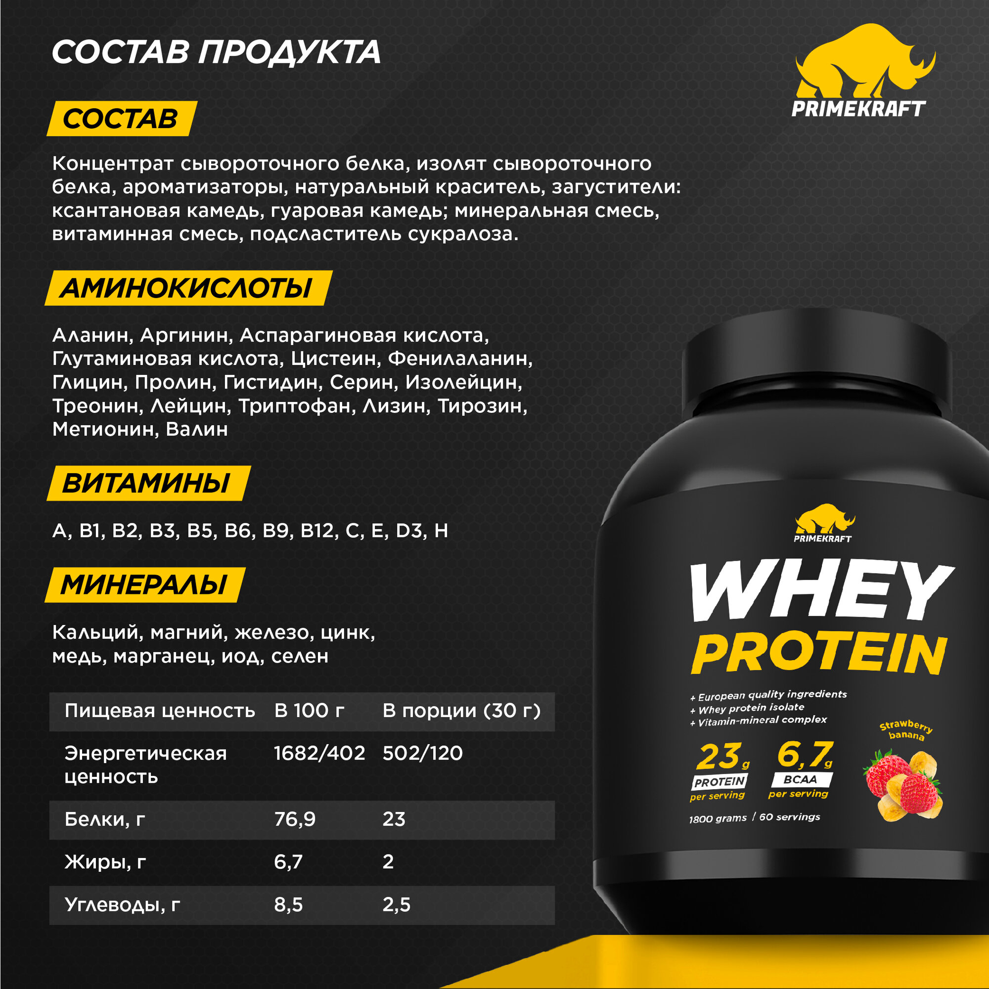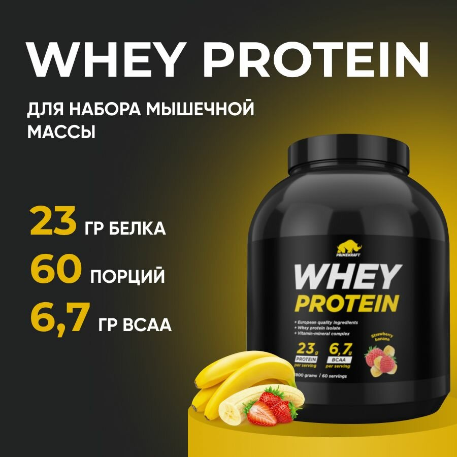 Сывороточный протеин Prime Kraft Whey Protein - 1800 грамм(клубника-банан)