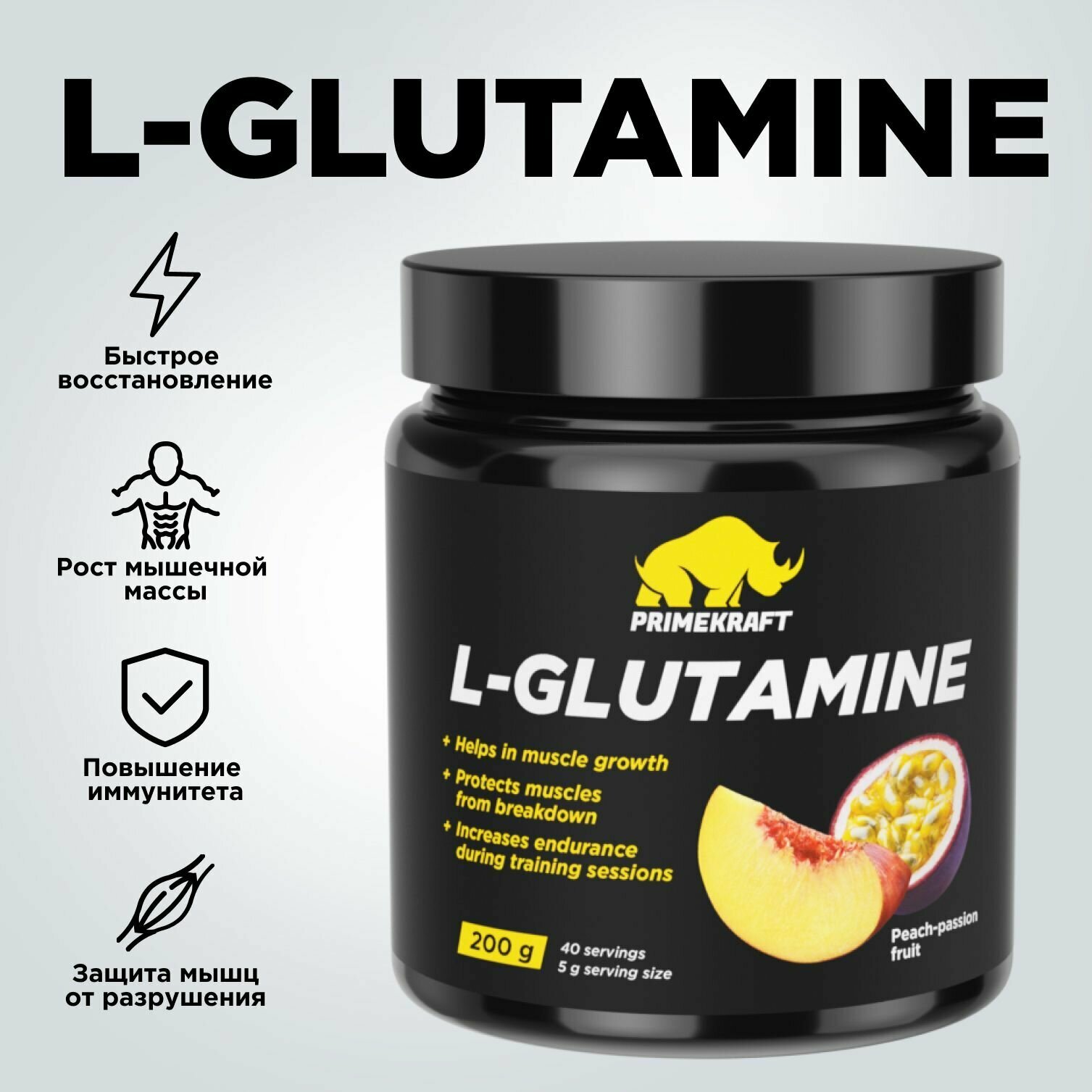 Аминокислота Л-Глютамин (L-Glutamin) Prime Kraft L-Glutamine (200 г) Персик-Маракуйя