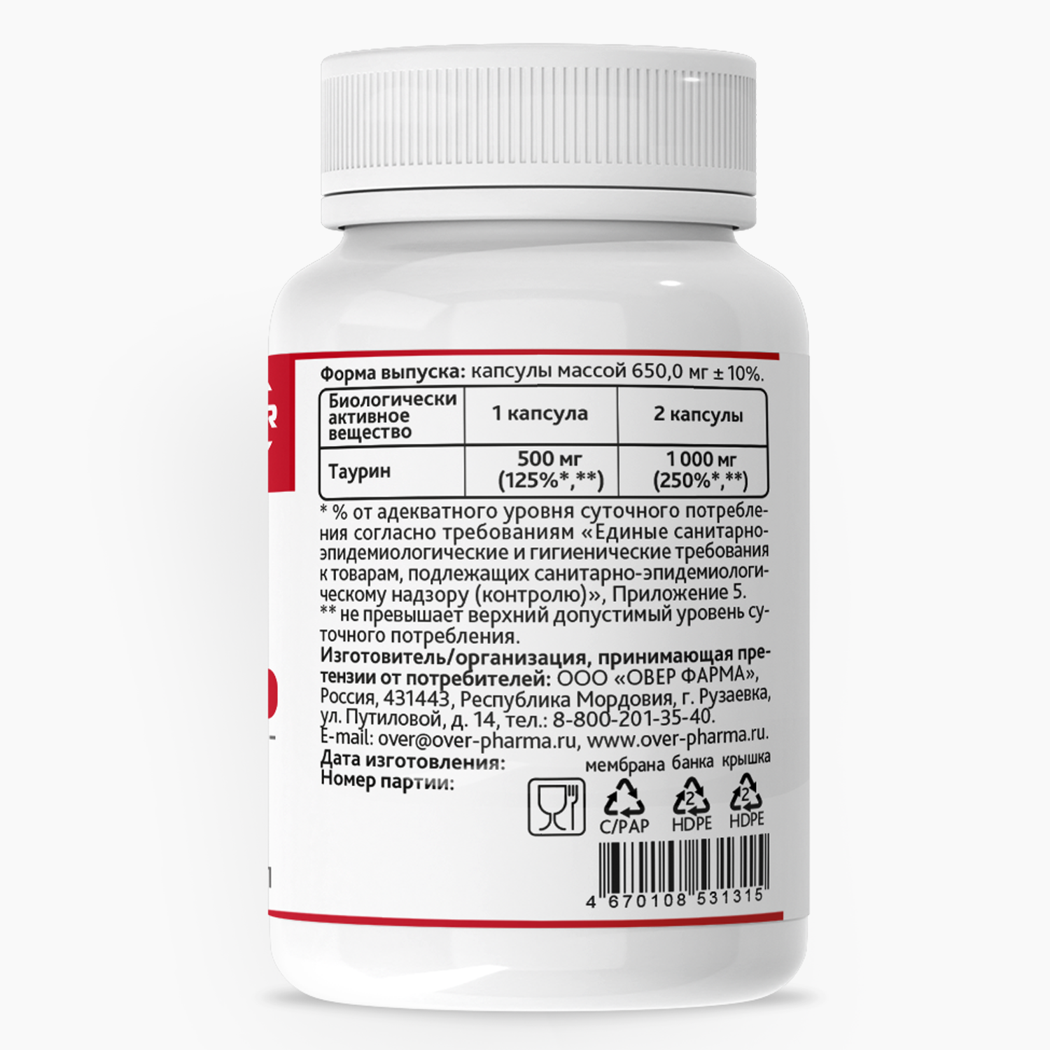| Тип | аминокислота / Витамины / Витамины / антиоксиданты: таурин |