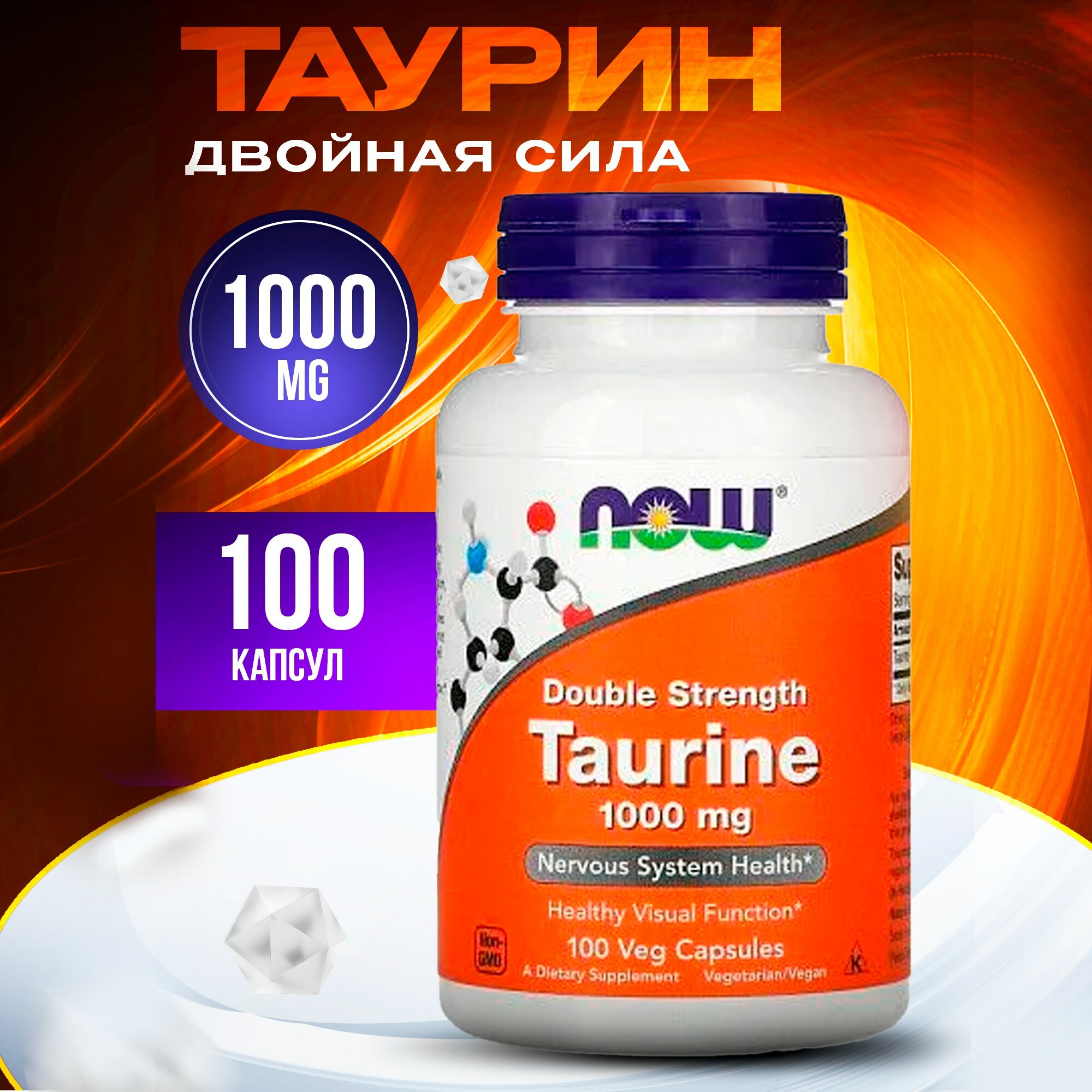 Купить Now Foods Taurine Таурин, двойная сила, 1000 мг, 100 растительных капсул