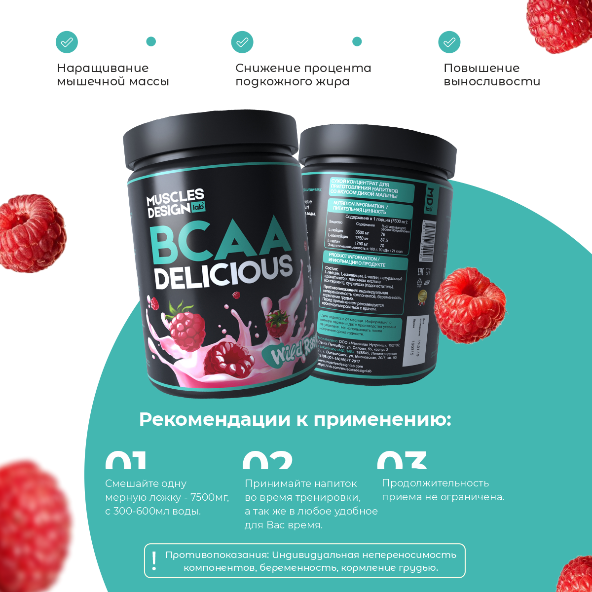 Muscles Design Lab BCAA Delicious 200 гр (дикая малина)