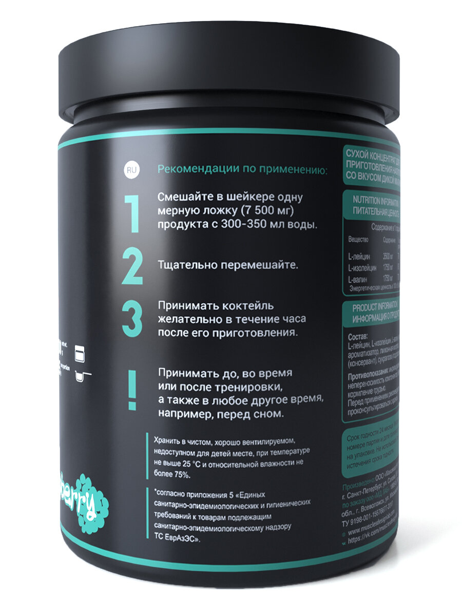 Muscles Design Lab / Аминокислоты BCAA Delicious - Rich Blackberry / Ежевика / BCAA 2:1:1 / БЦАА порошок / 200 гр