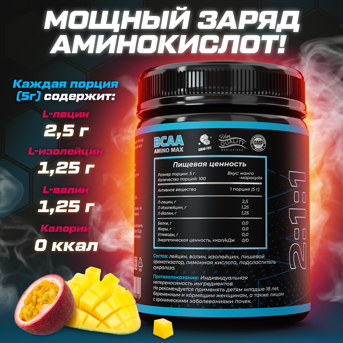 Купить BCAA аминокислоты со вкусом манго-маракуйя 500 гр порошок