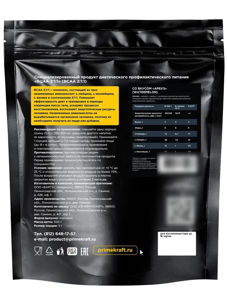 Аминокомплекс Prime Kraft BCAA 2:1:1 (500 г) Арбуз интересное: