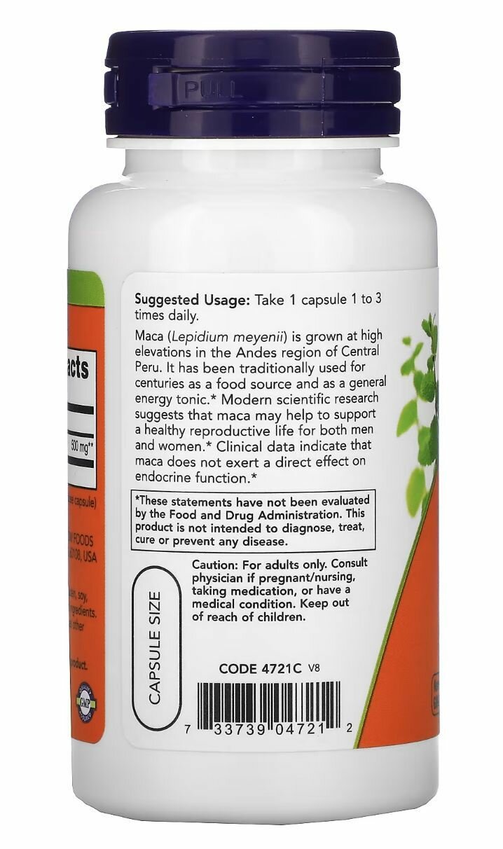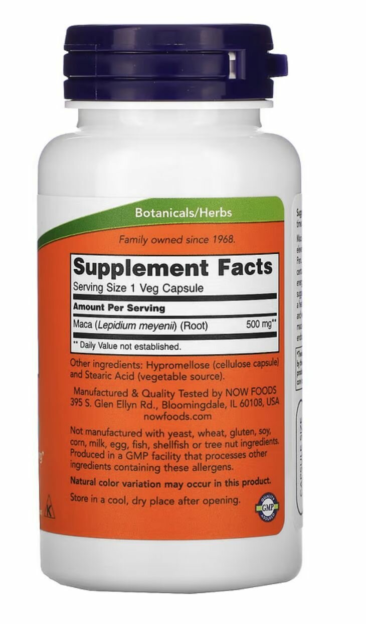 Купить NOW Foods, мака, 500 мг, 100 растительных капсул, средство для улучшения потенции, повышения энергии и либидо