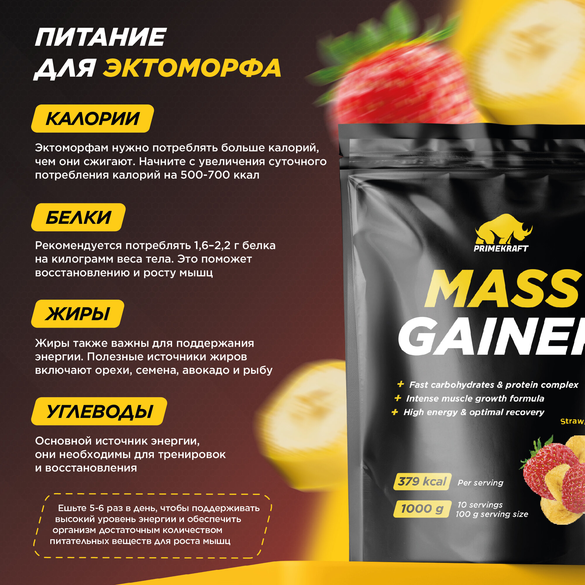 СохранитьГейнер белково-углеводный PRIMEKRAFT/ MASS GAINER для набора массы со вкусом "Клубника-Банан" 1000 гр интересное: