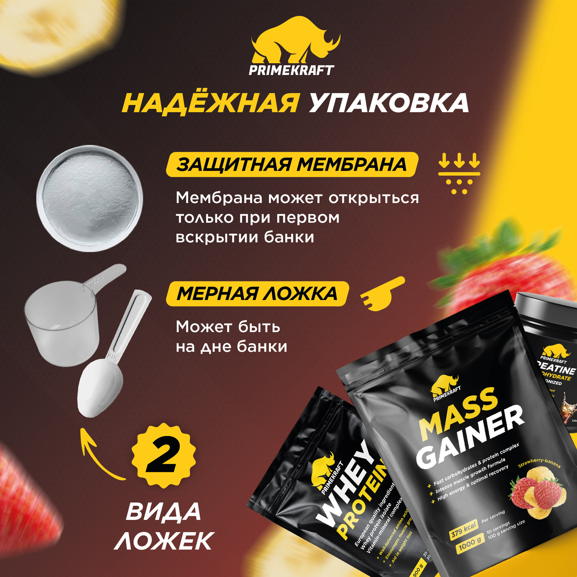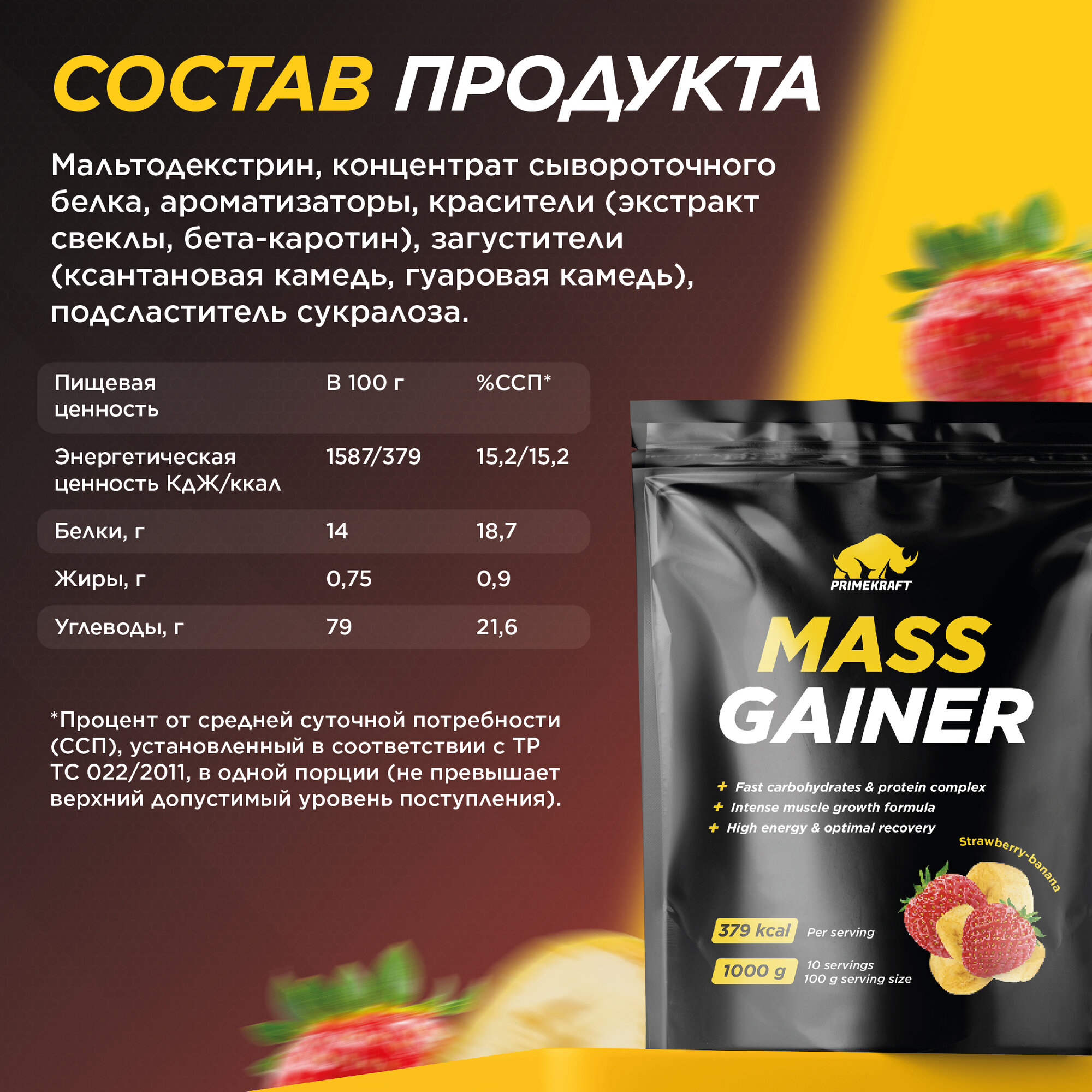 Купить Гейнер белково-углеводный PRIMEKRAFT/ MASS GAINER для набора массы со вкусом "Клубника-Банан" 1000 гр