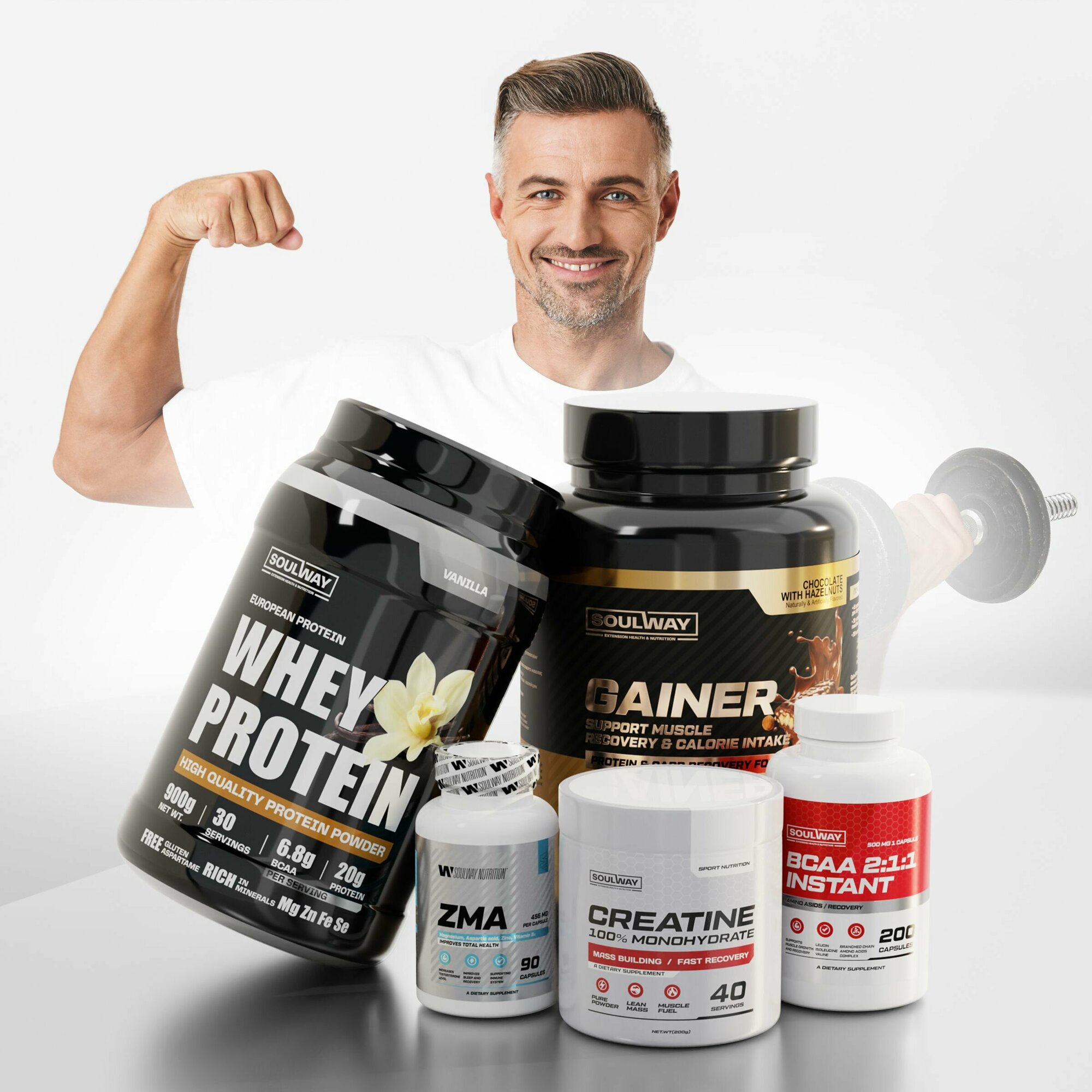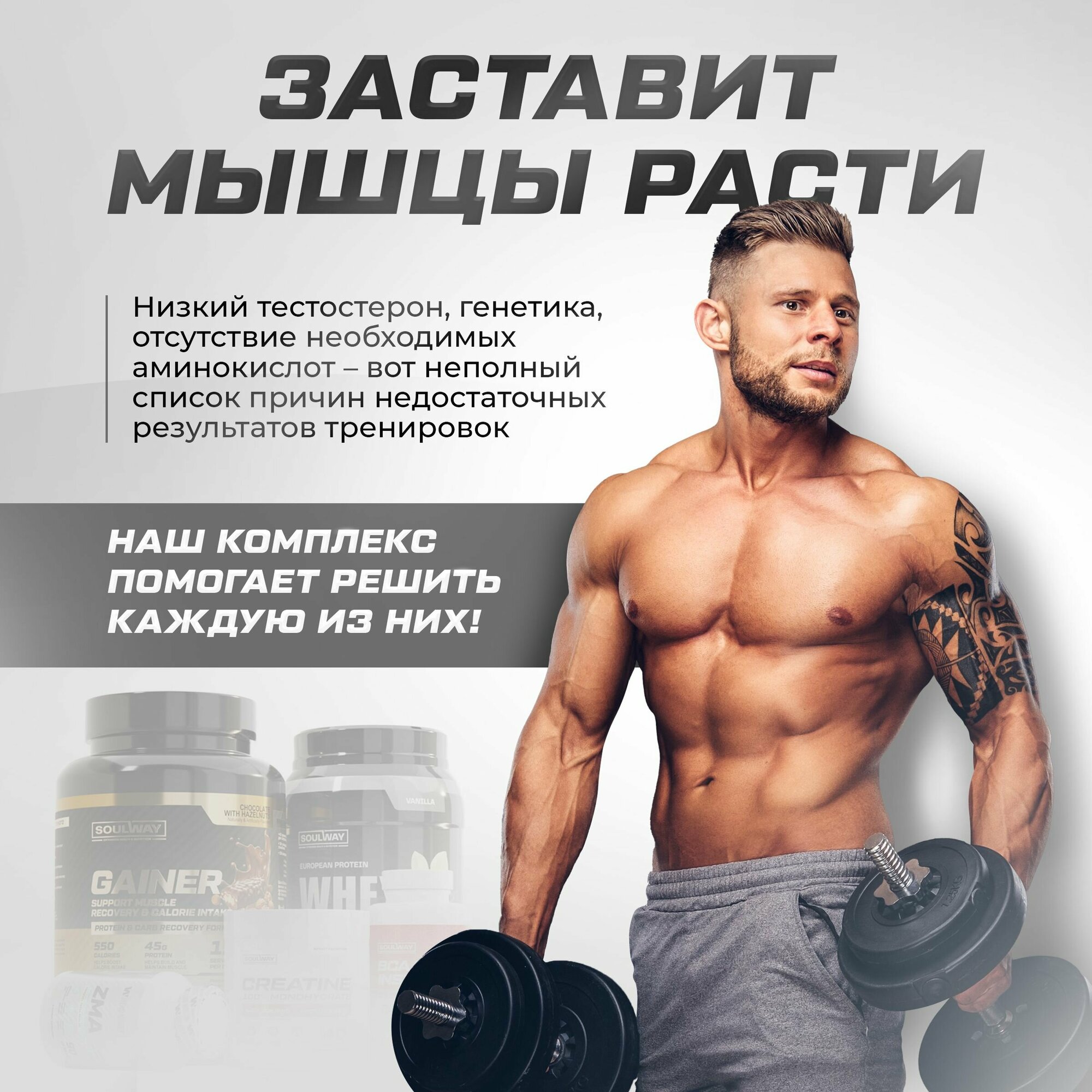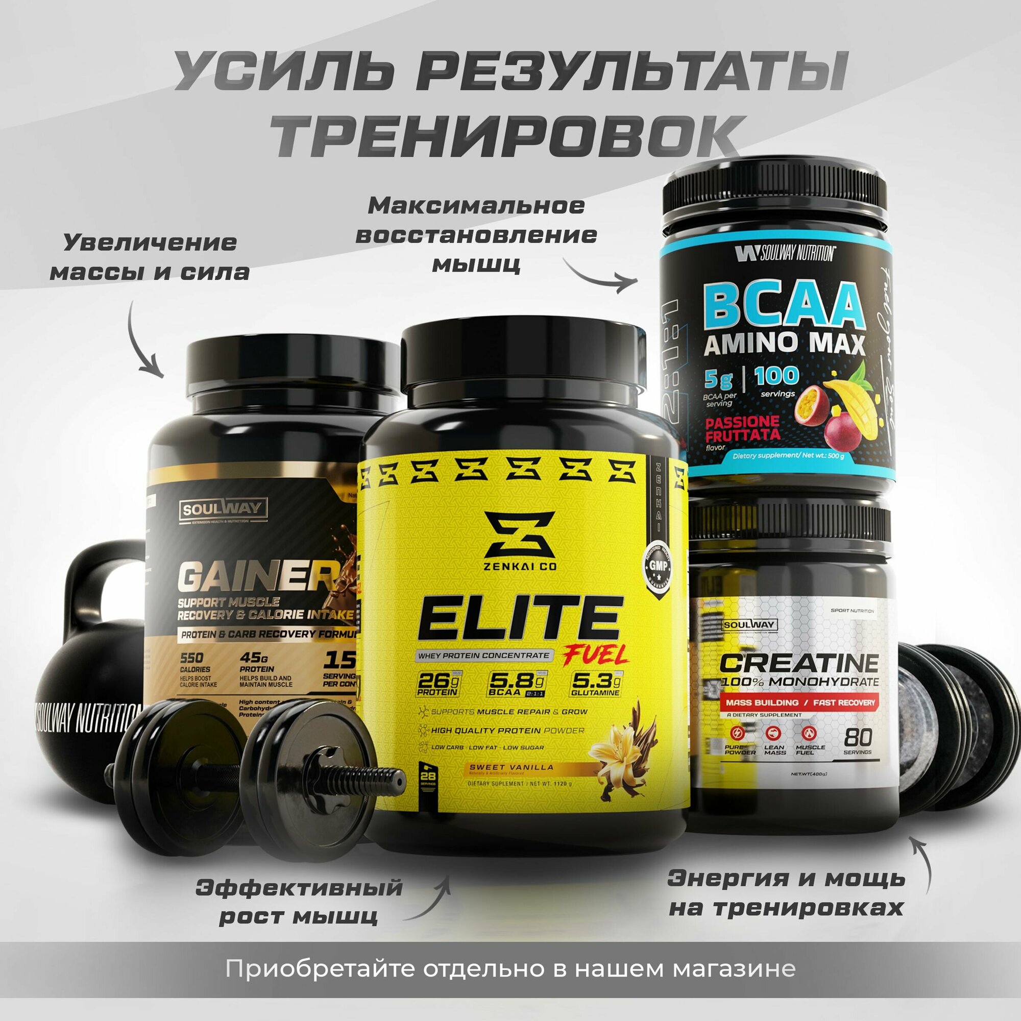 Полный набор для наращивания мышечной массы Гейнер + Протеин + Креатин + BCAA + ZMA интересное: