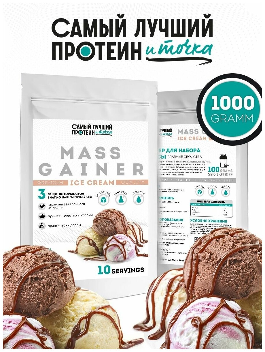 Купить Самый Лучший Протеин и Точка Гейнер высокоуглеводный быстрый со вкусом Пломбир 1000г